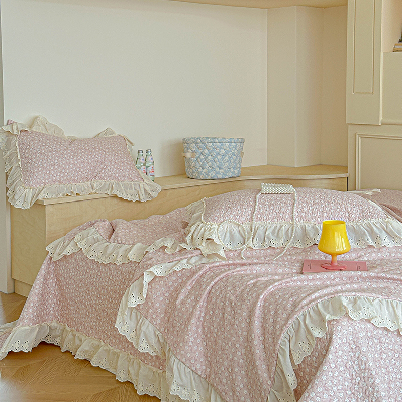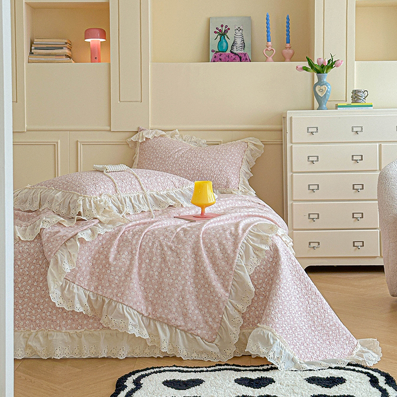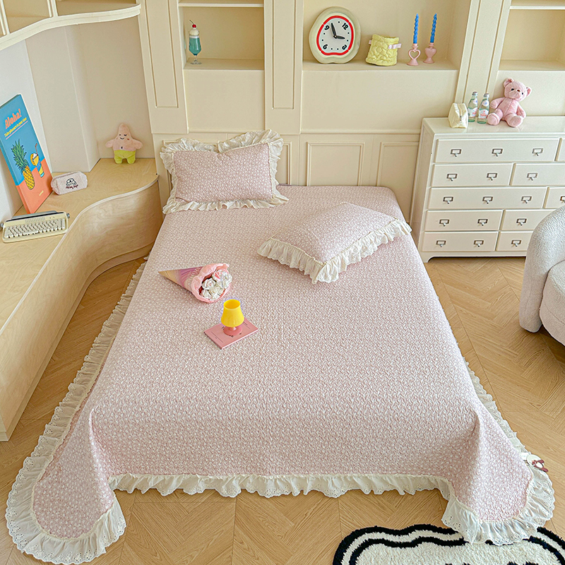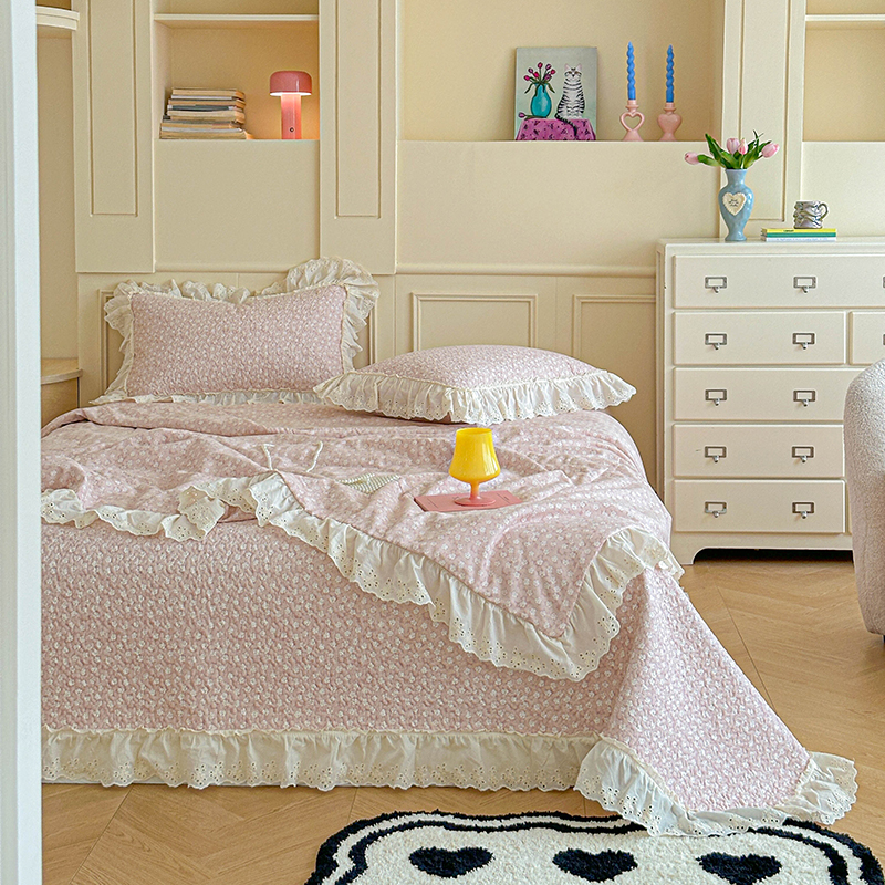 源舜家纺 2025新款全棉双层纱床盖三件套四件套 可可甜心粉