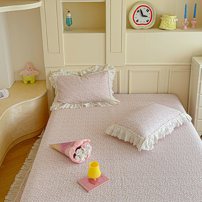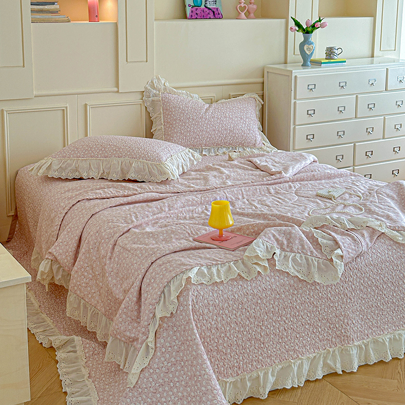 • 91家纺网 家纺一手货源 找家纺 源舜家纺 2025新款全棉双层纱床盖三件套四件套 可可甜心粉