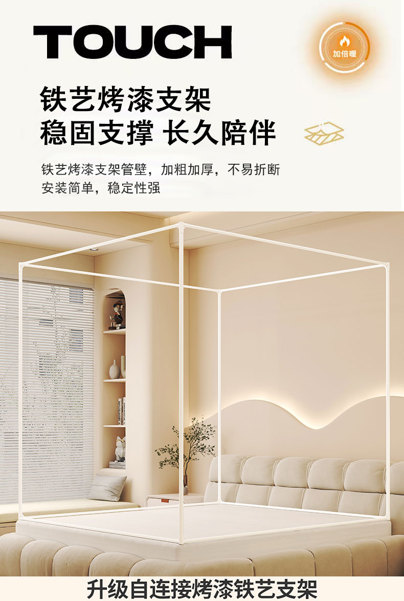 180x200cm(防尘顶蚊帐+加粗自连接支架) | ¥105.00 |