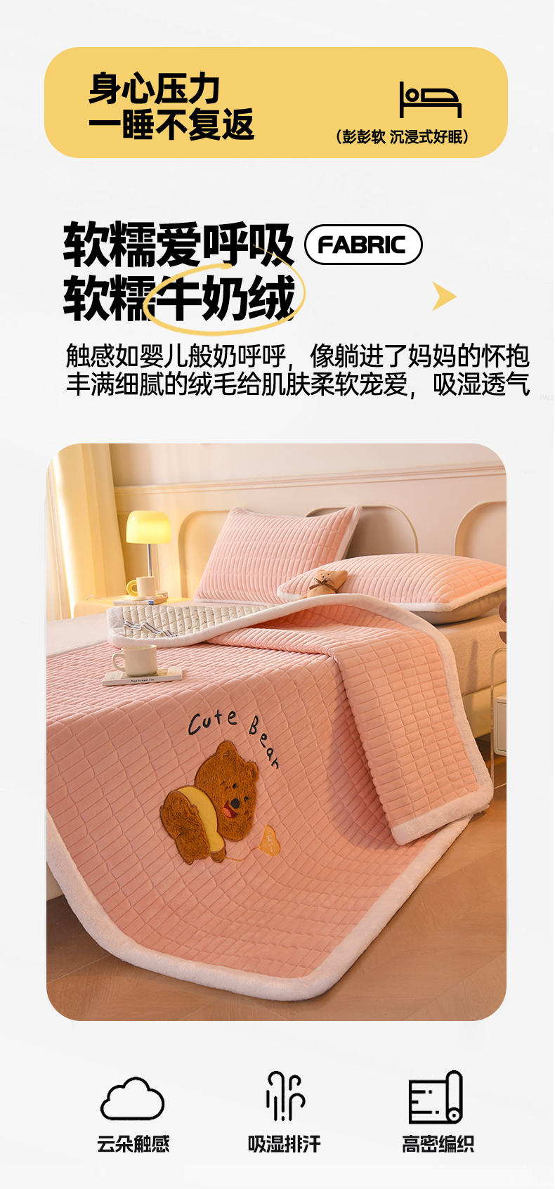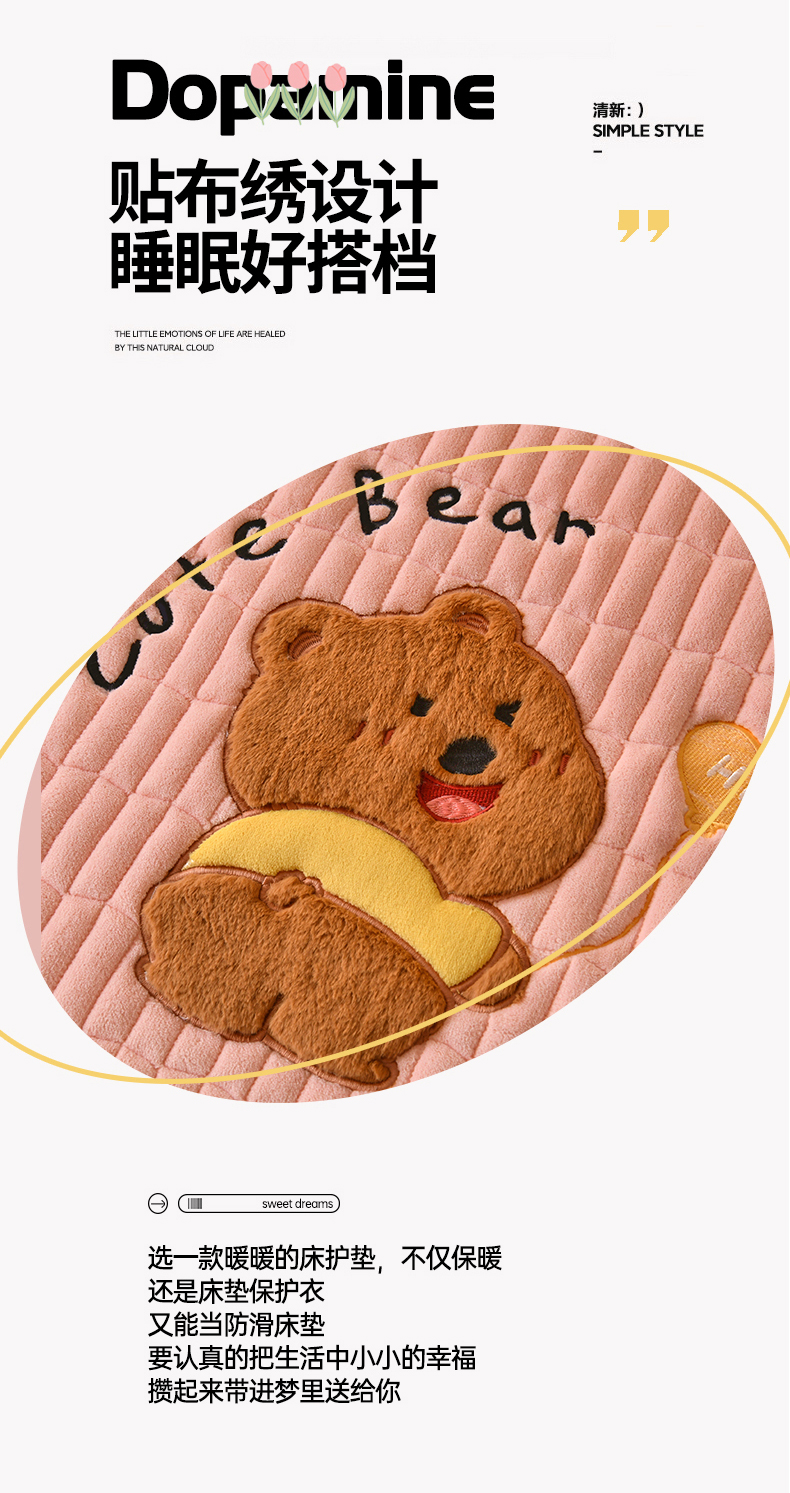 当前位置: 91家纺网 > 商品网购 > 床垫/床褥 > 普通床垫 > 悠米悠家 2025新款牛奶绒夹棉加厚床褥-小狗 小熊系列 小熊-粉色