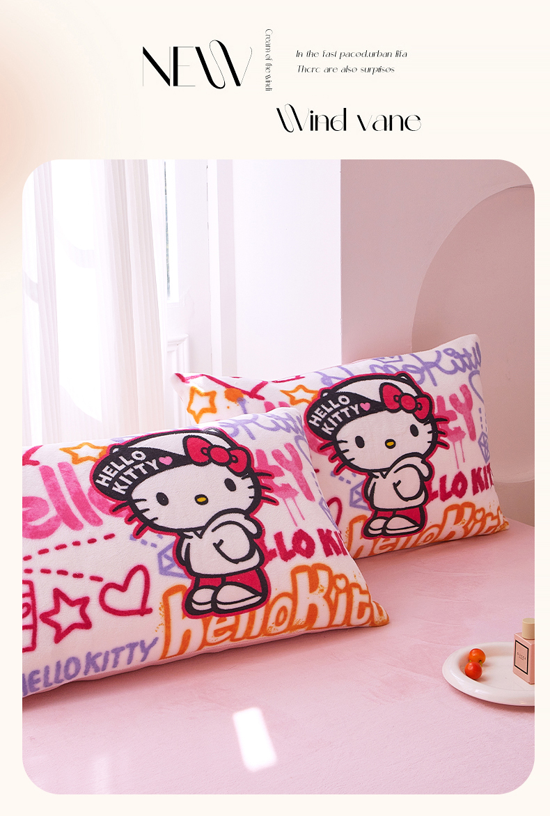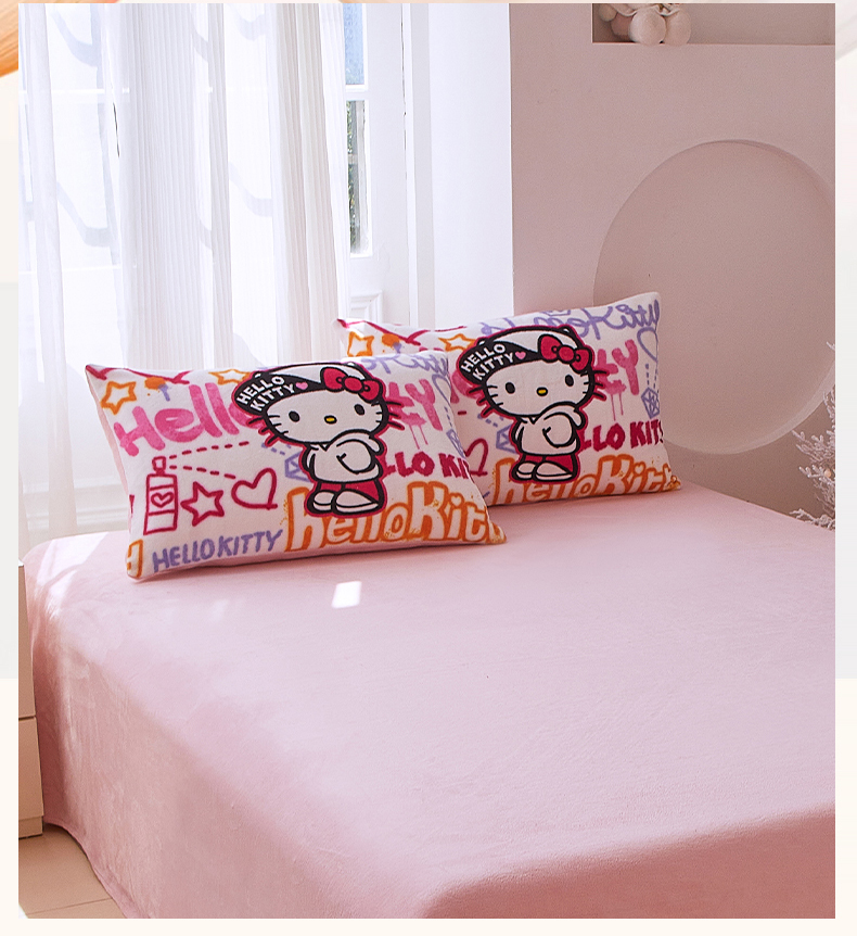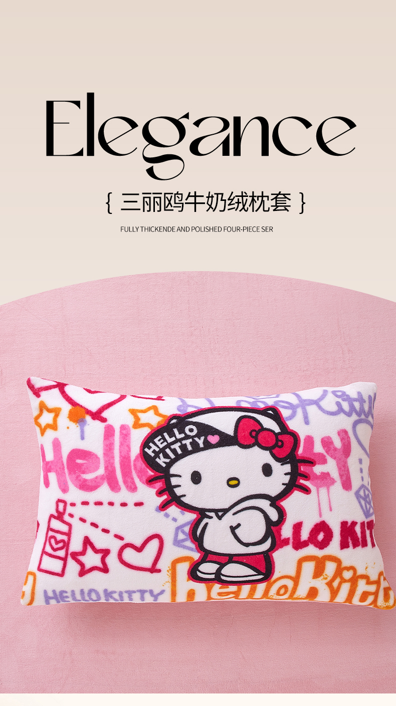 商品名称:蘭菲家纺 2025新款三丽欧牛奶绒套件系列单品枕套 涂鸦奶茶