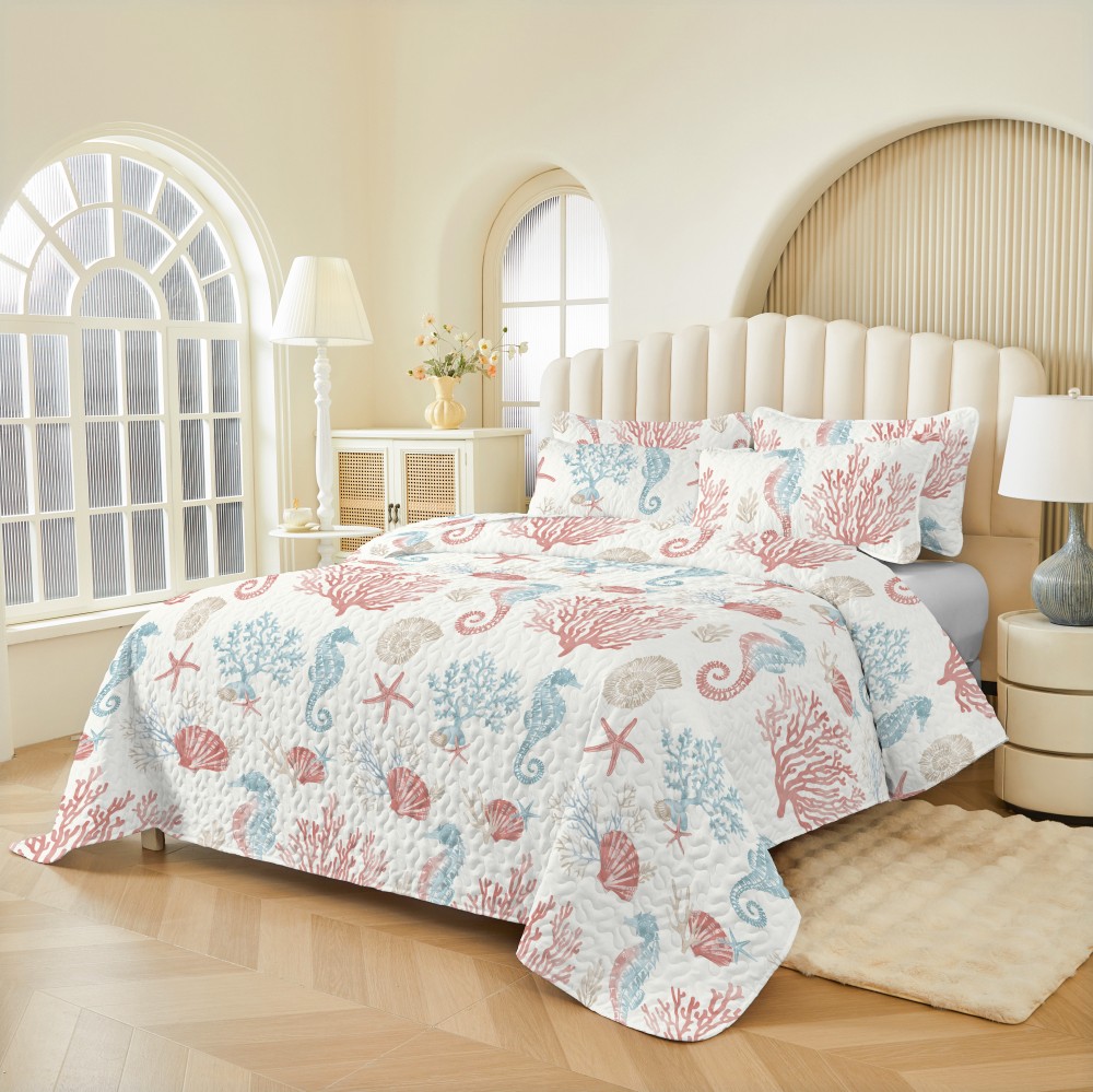 商品名称:跨境专供 2025新款四季通用床可水洗夹棉印花绗缝床盖绗缝被