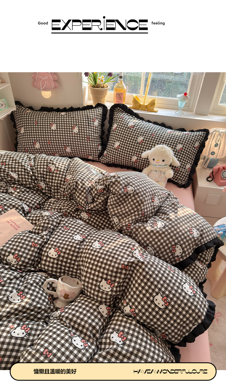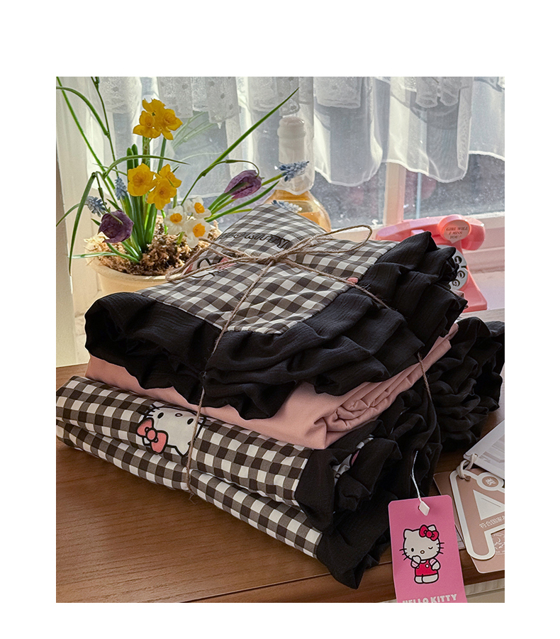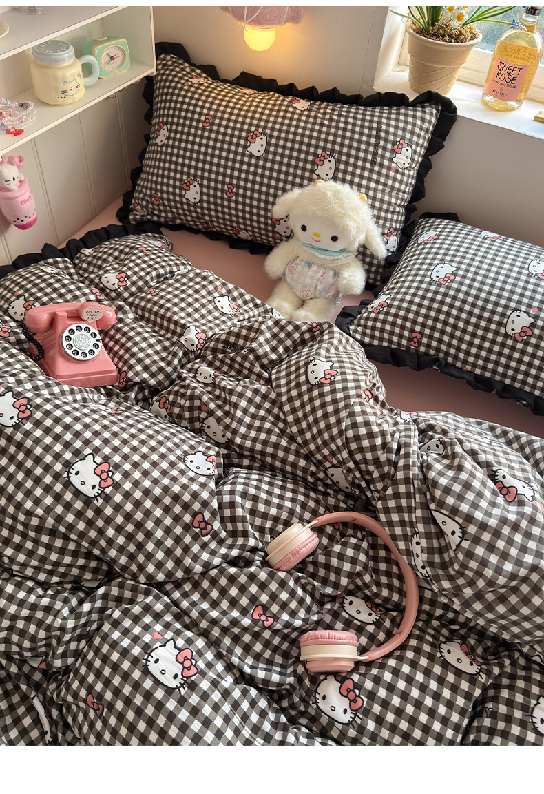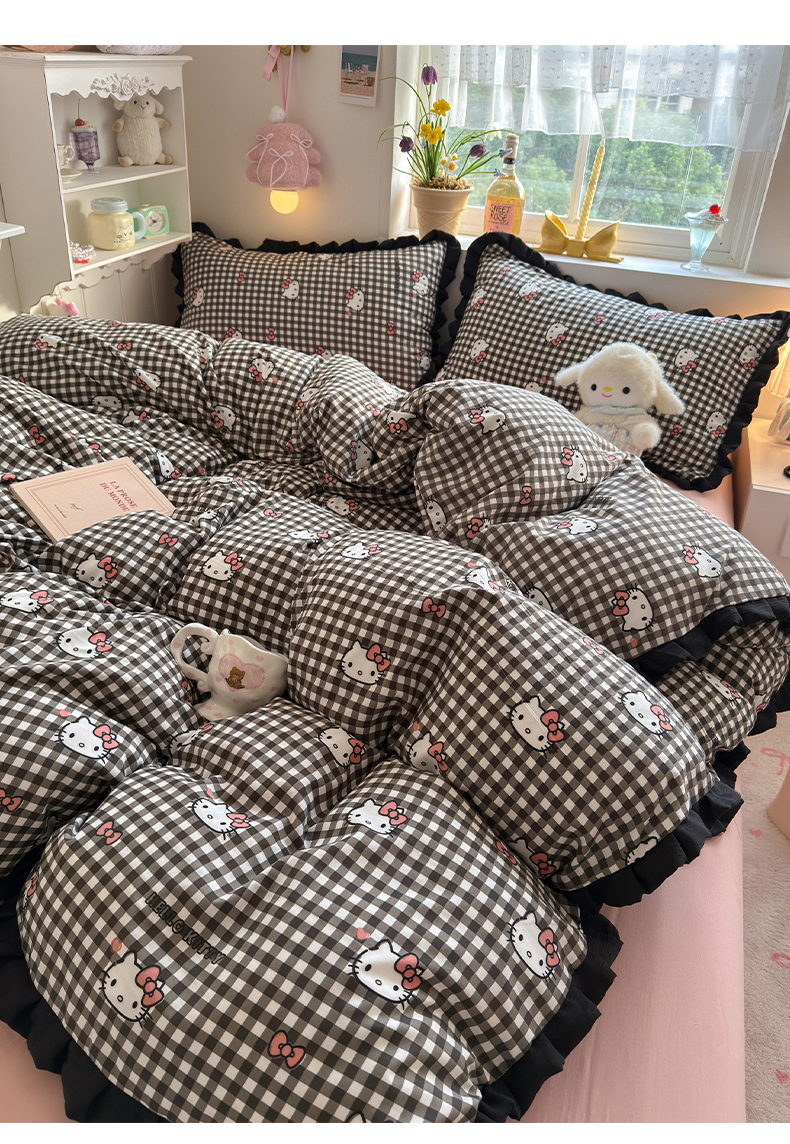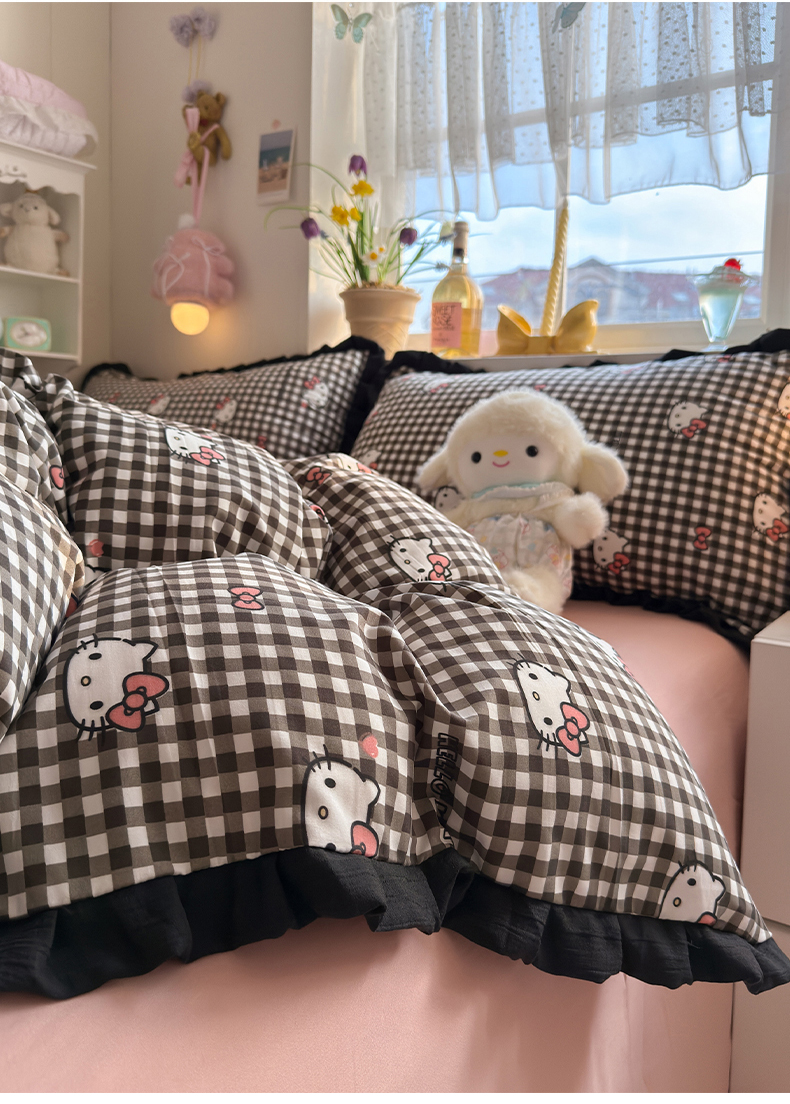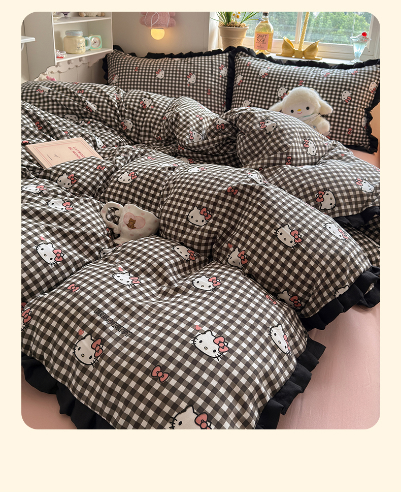 当前位置: 91家纺网 > 商品网购 > 床品套件 > 四件套 > 双层纱四件套 > 星禾优选 2025新款三丽鸥加厚水洗双层纱花边款四件套 黑调格kt
