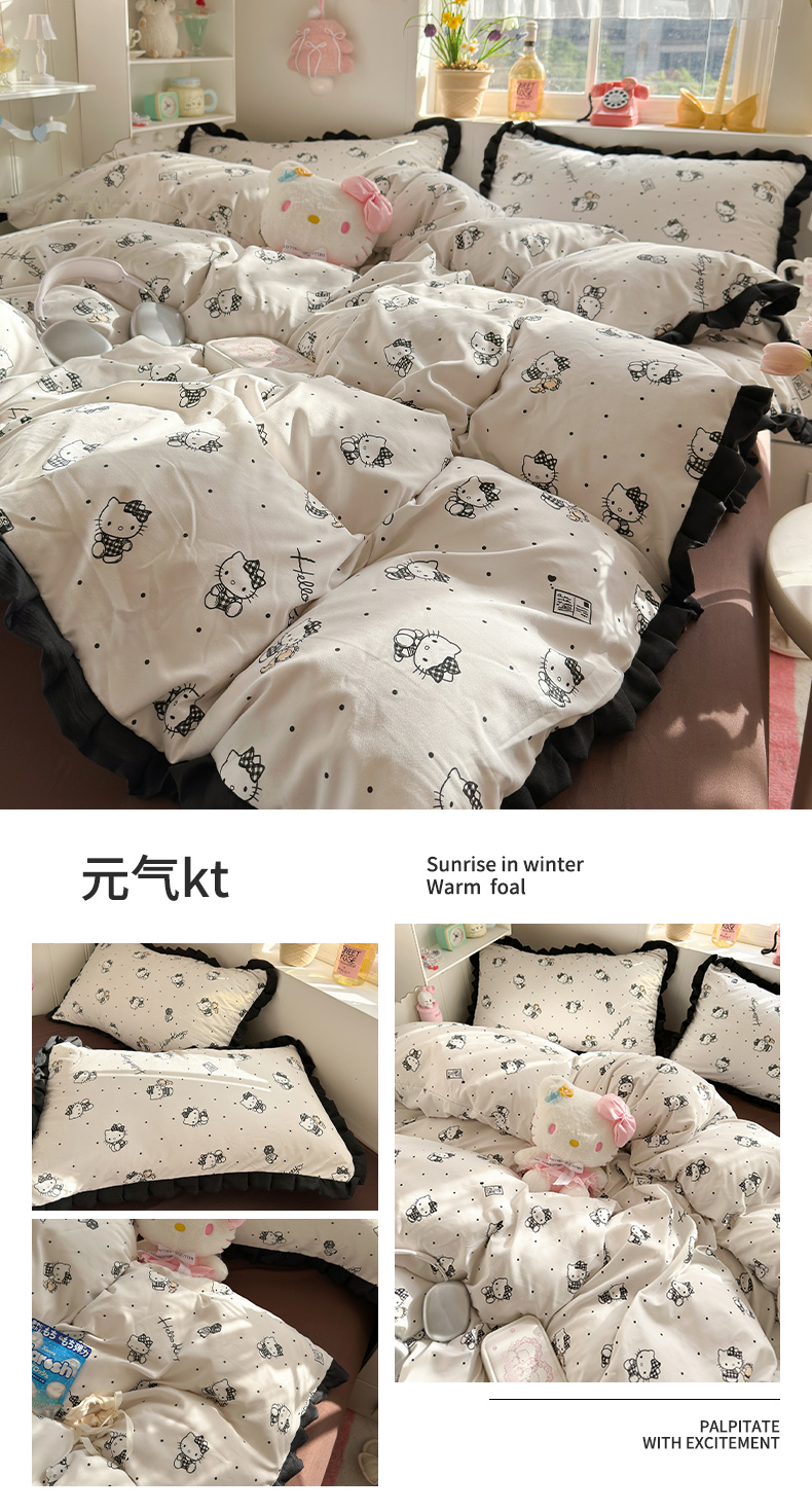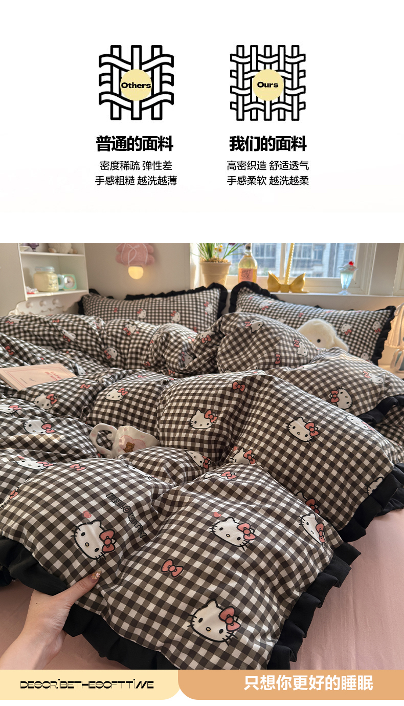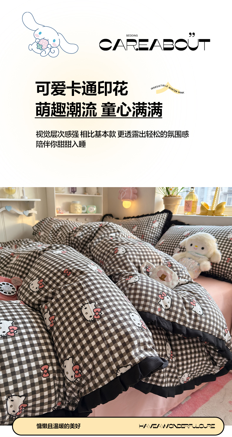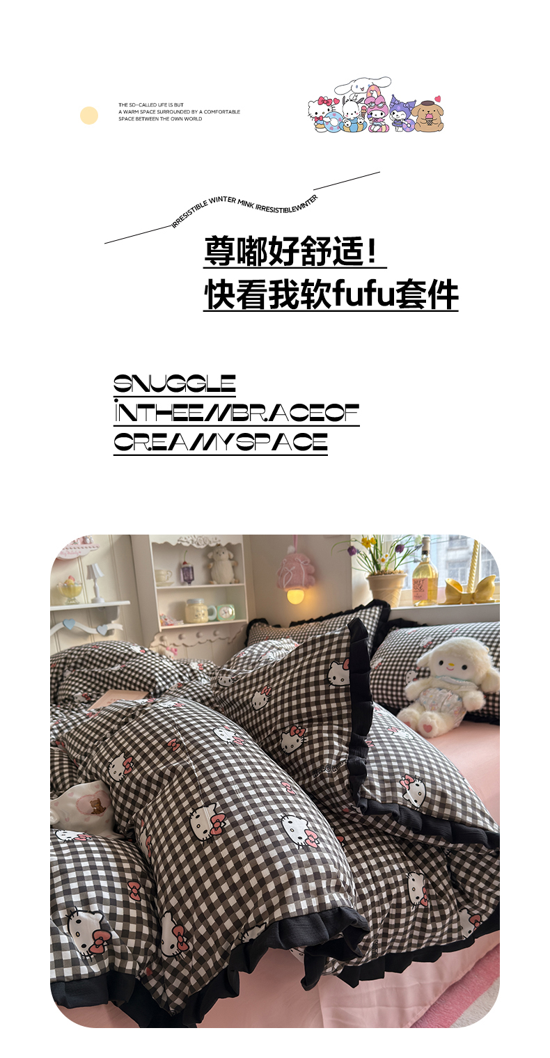 当前位置: 91家纺网 > 商品网购 > 床品套件 > 四件套 > 双层纱四件套 > 星禾优选 2025新款三丽鸥加厚水洗双层纱花边款四件套 黑调格kt