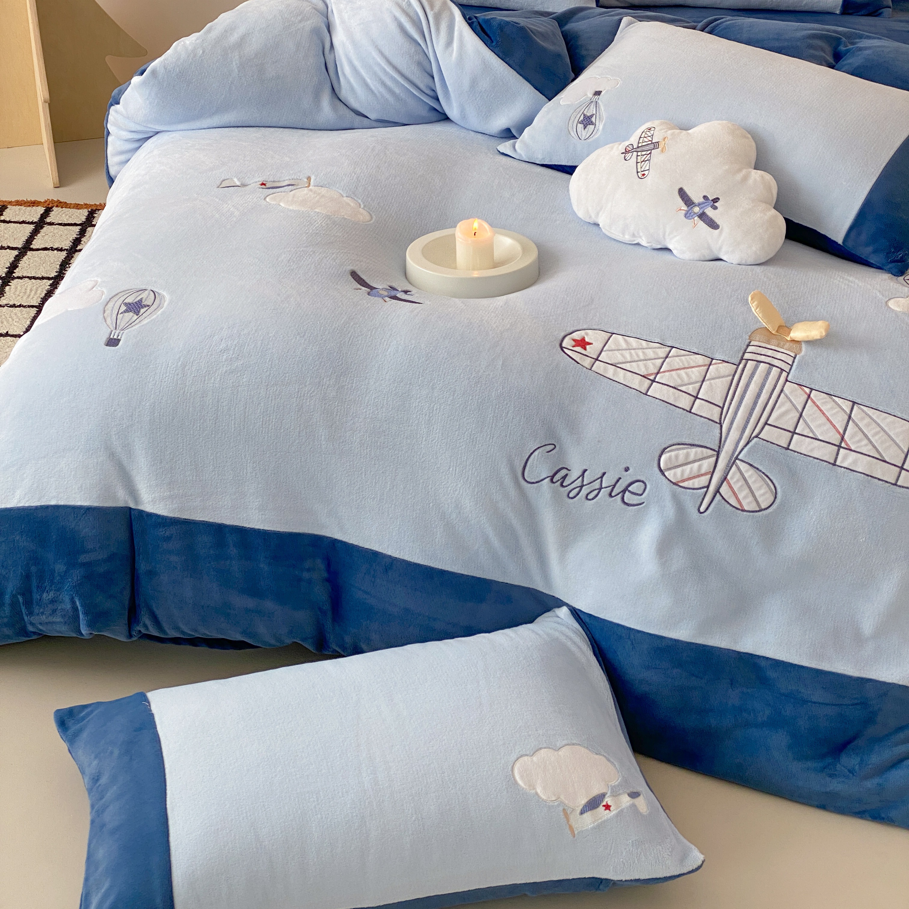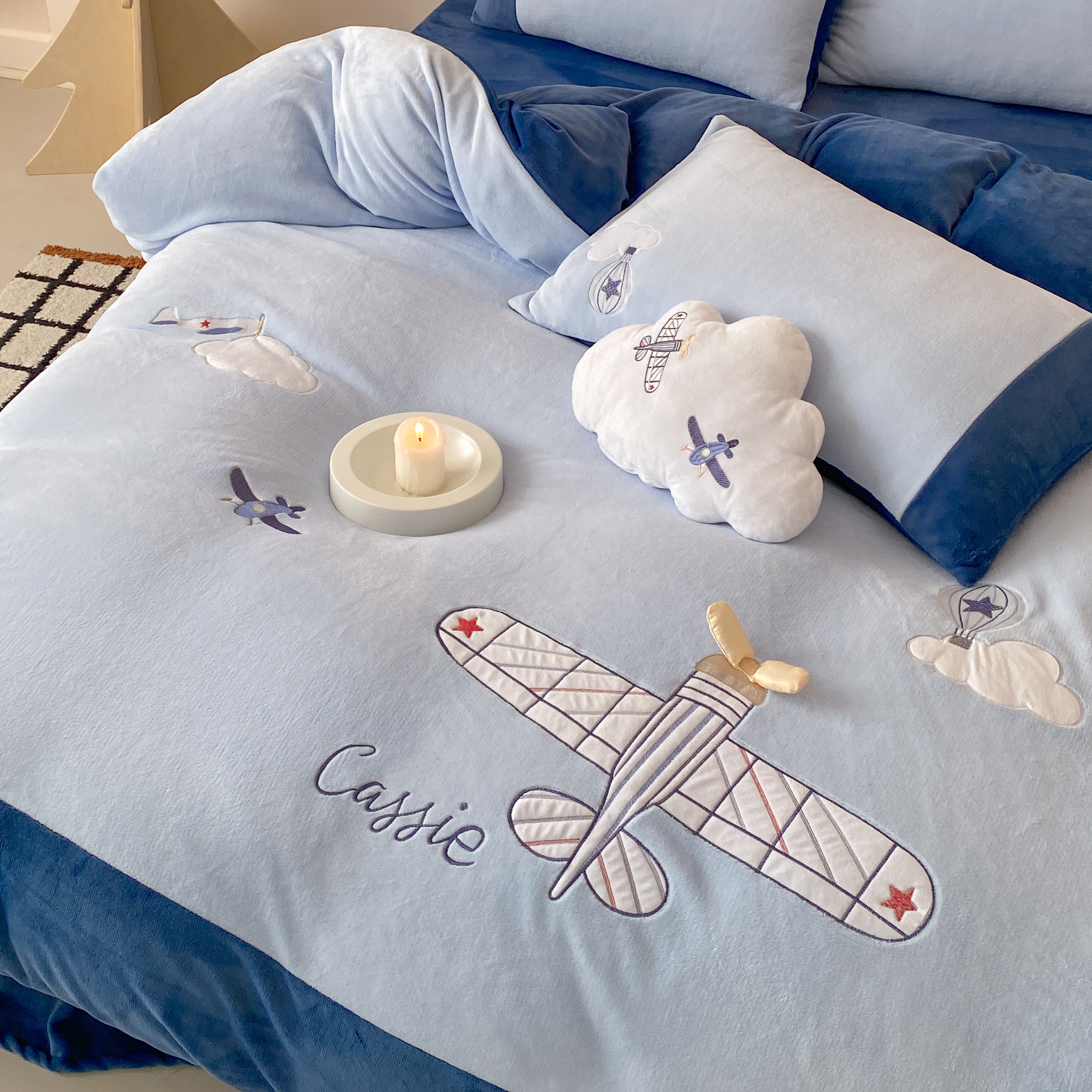 当前位置: 91家纺网 > 商品网购 > 床品套件 > 四件套 > 牛奶绒四件套 > (总)曼布缇 2025新款青少年加厚牛奶绒绣花四件套-飞行日记(全部送抱枕 会员减20元 券后288起)