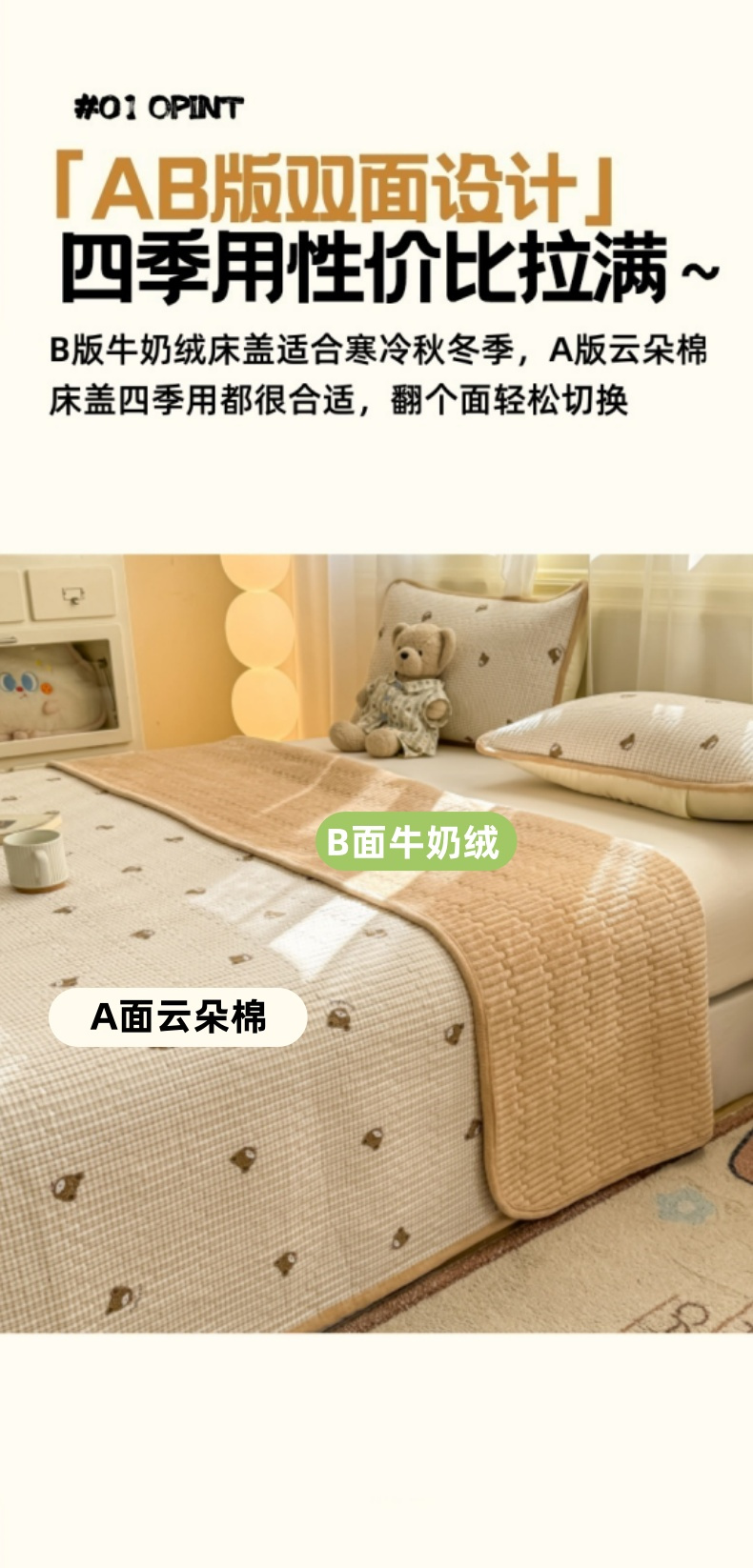 商品名称:(总)圣比熊 2025新款A类云朵棉加牛奶绒双面夹棉床盖床垫保护套床垫保护罩三件套