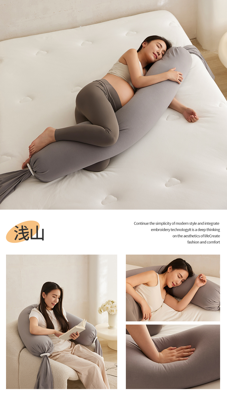 商品名称:头等舱 2025新款全棉氨纶针织A类孕妇 护腰 侧睡 靠垫 安抚枕 抱抱 夹腿多功能枕(模特图)配包装 浅山