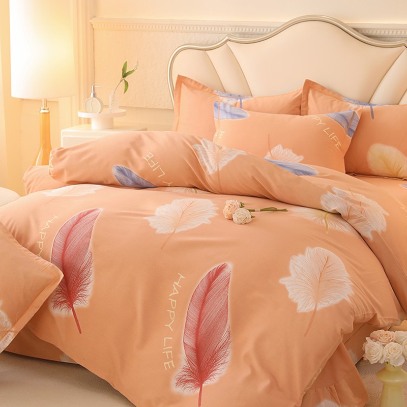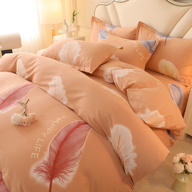 木易家居2026新款全棉磨毛印花四件套 羽缘