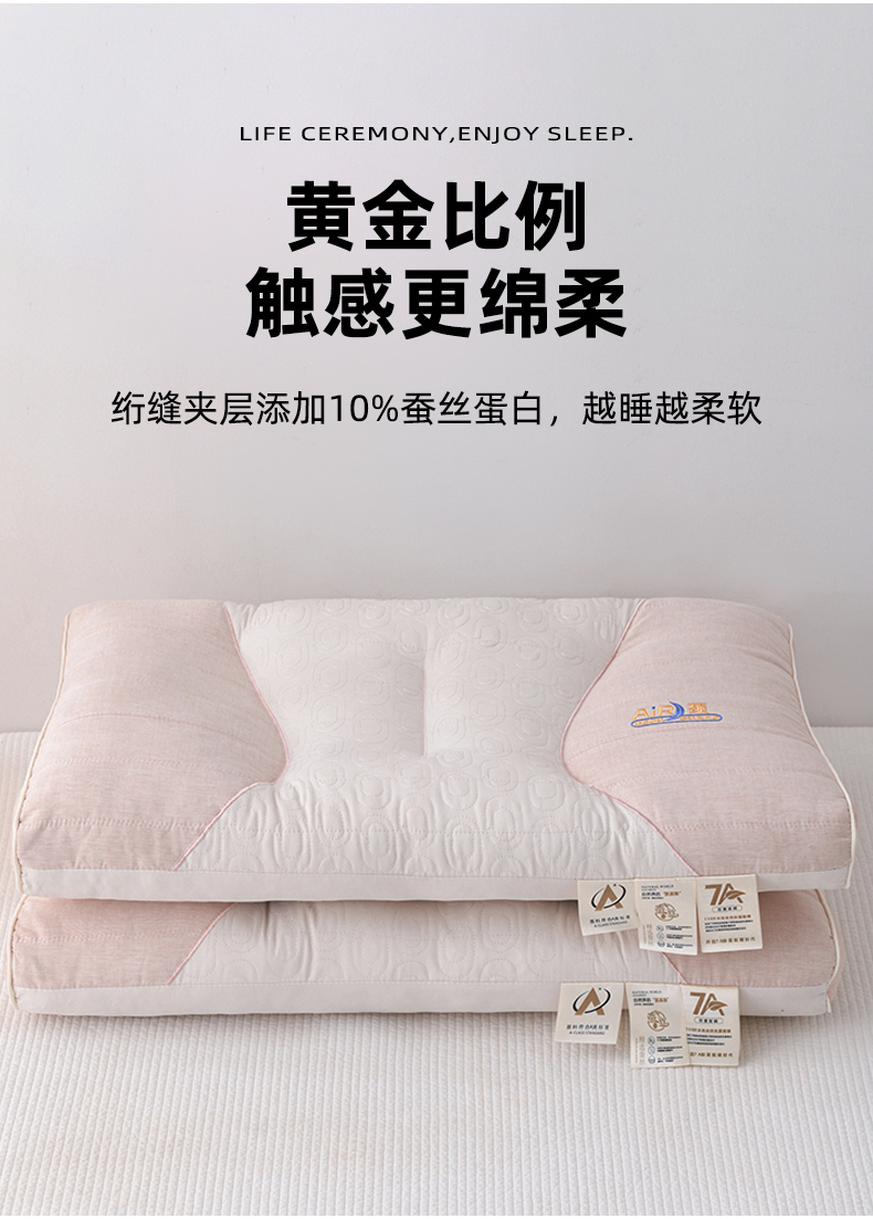 当前位置: 91家纺网 > 商品网购 > 枕头/枕芯/保健枕/颈椎枕 > 枕头枕芯 > 织布人 2025新款枕芯7A级抗菌AIR蚕丝护颈枕头成人家用分区护颈椎枕芯 A类AIR蚕丝护颈枕-粉色
