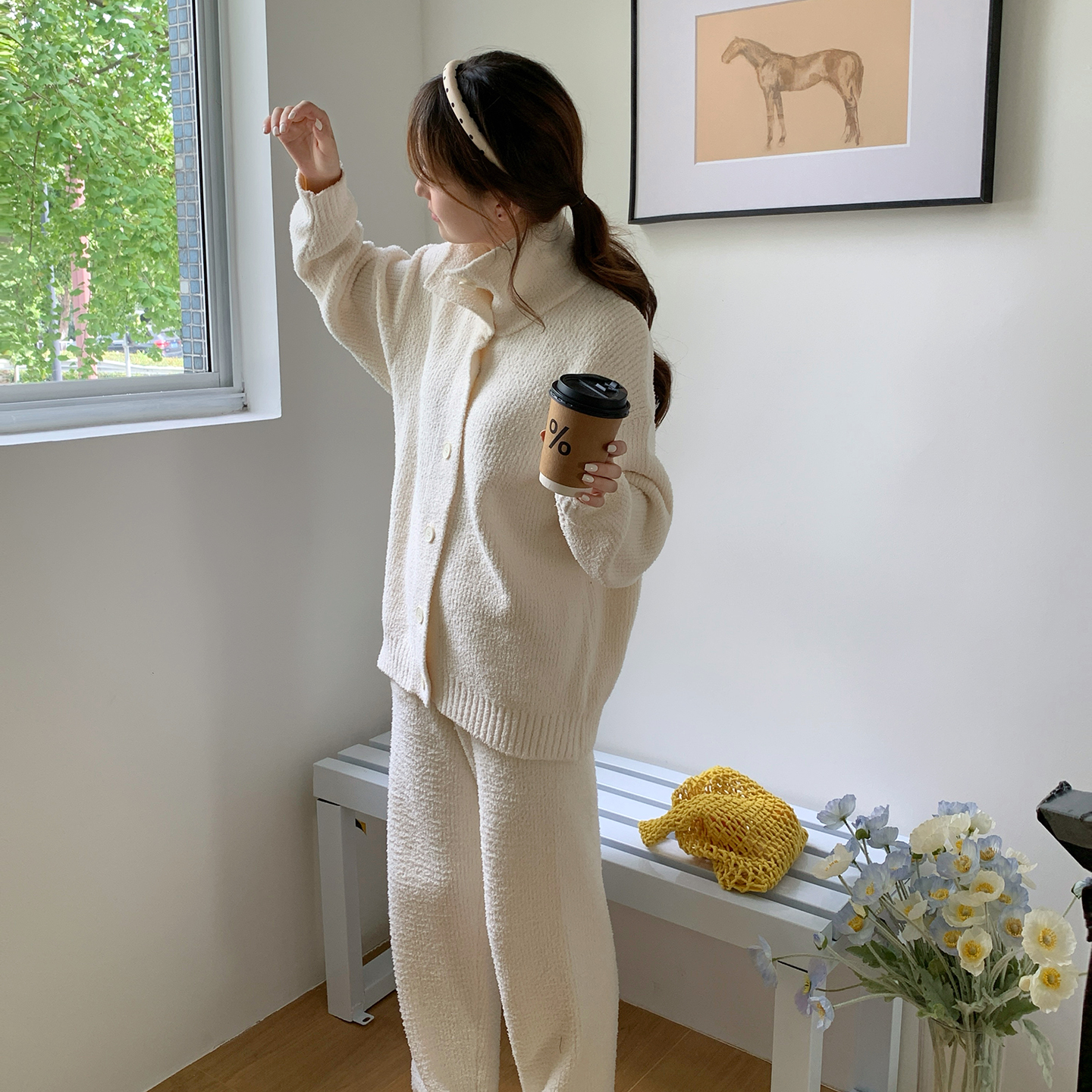 商品名称:多乐娜 2025新款半边绒家居服(会员拿货-5元,控价最低零售价138元起!) 杏灰条纹