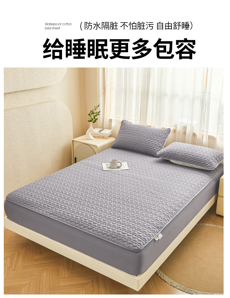 邵依家纺 2025新款A类大豆夹棉爱心款原棉防水床笠 爱心深灰