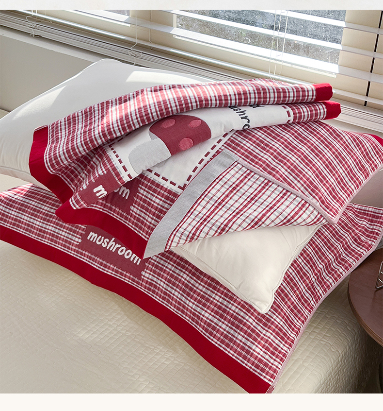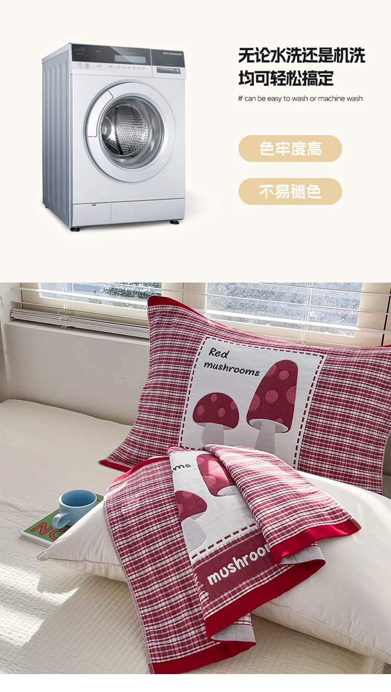 商品名称:美宜家 2026新款全棉细纱加厚萌系治愈风枕巾 条纹蘑菇一对