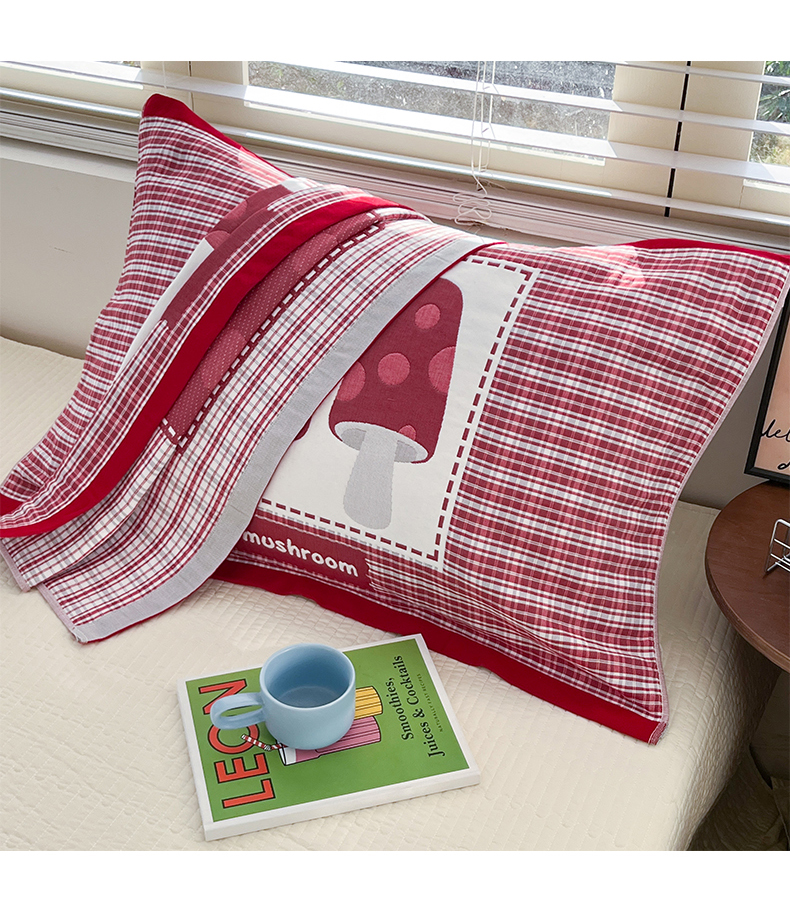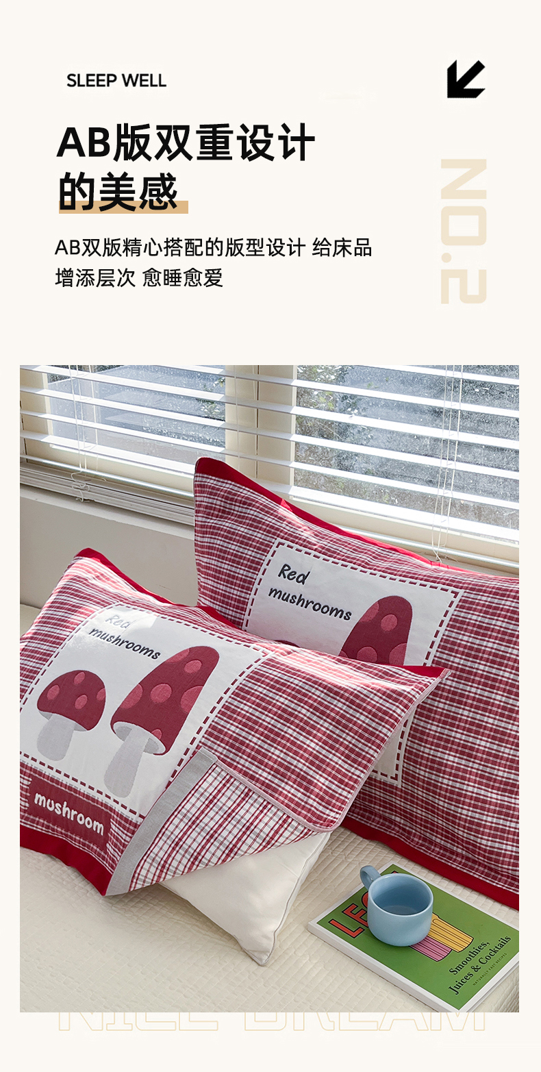 美宜家 2026新款全棉细纱加厚萌系治愈风枕巾 条纹蘑菇一对