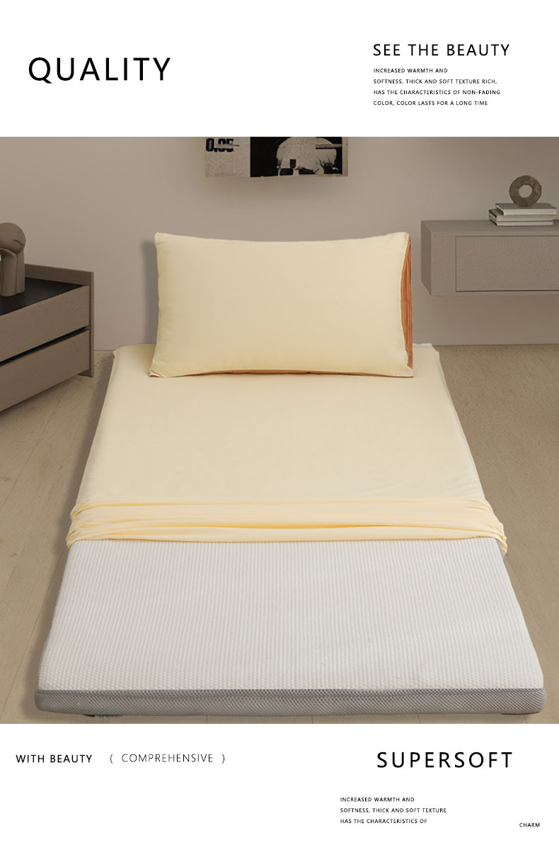 • 91家纺网 家纺一手货源 找家纺 啊雅家居 2026新款学生宿舍家用双面被褥套床垫套 梦幻黄