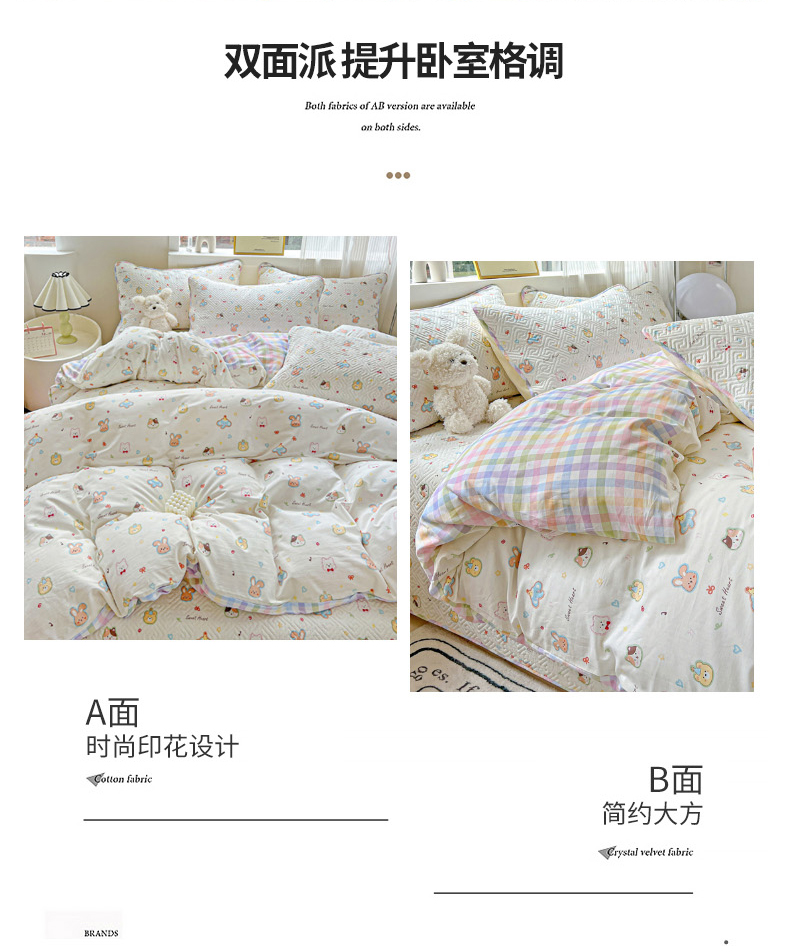 (总)羽爱家纺 2025新款A类全棉印花水洗床盖四件套系列,薄荷碎,笔记,草莓物语,动漫恐龙,格瑞,好伙伴,花间鹿,菱形恐龙,萌宠国度,萌萌兔,奶油兔,清新,森林派对,甜心猫猫,童话,童年,汪汪队,小心意,小幸运,心相印,星星点灯,熊猫林,雅格,伊丽莎白,组合图仅展示