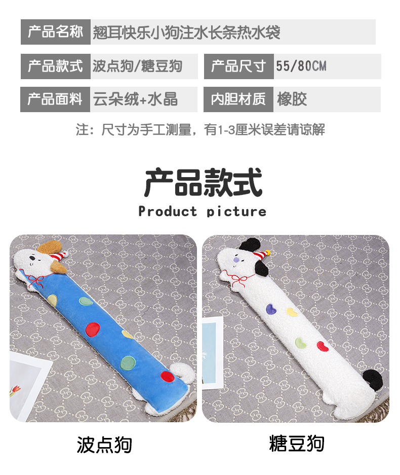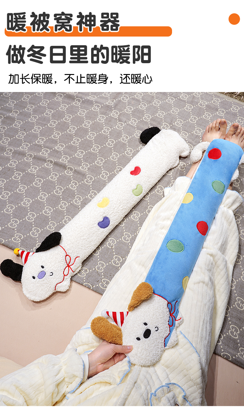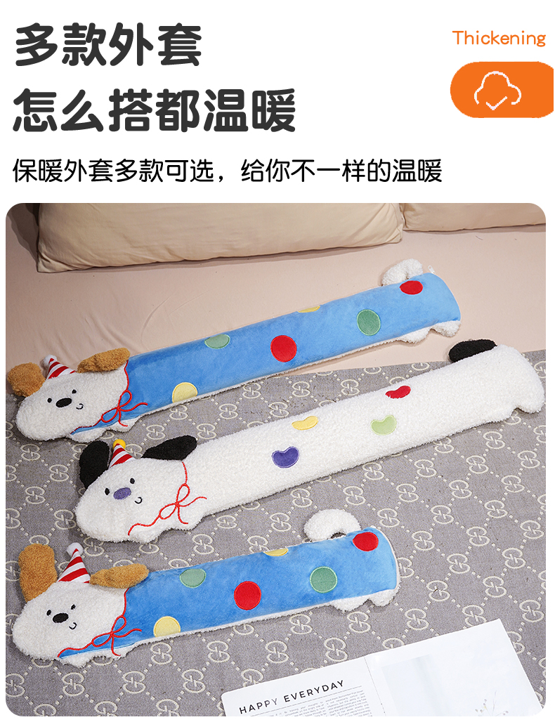 当前位置: 91家纺网 > 商品网购 > 居家日用 > 靠垫/抱枕 > 仟亿莱 2026新款翘耳小狗注水长条热水袋 组合图仅供展示不可下单