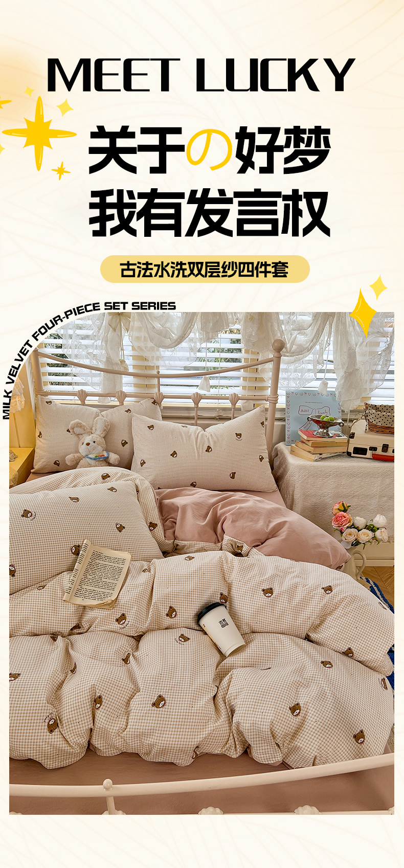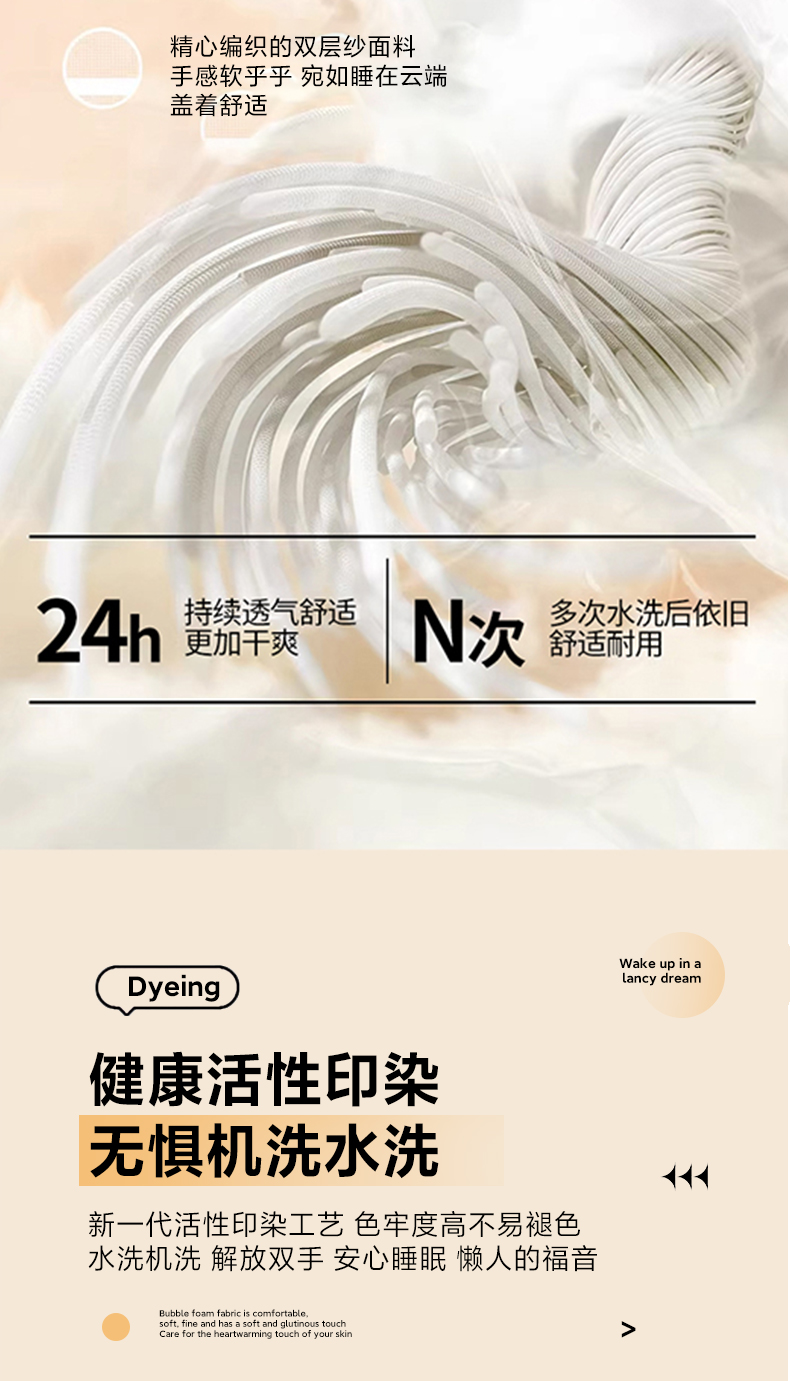 当前位置: 91家纺网 > 商品网购 > 床品套件 > 四件套 > 水洗棉四件套 > 玉海棠家纺 2026新款古法水洗仿棉云感纱四件套 彩色心动