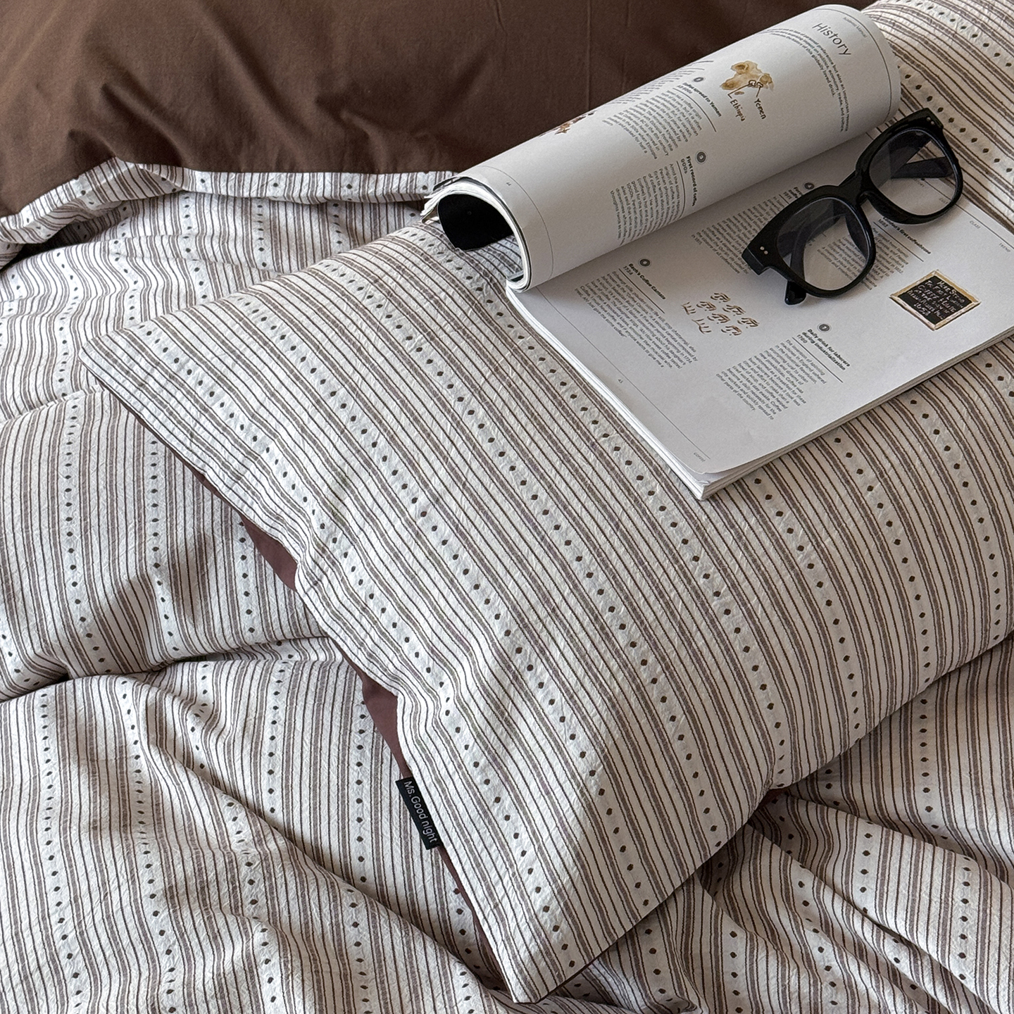 当前位置: 91家纺网 > 商品网购 > 床品套件 > 四件套 > 全棉普通四件套 > 蜜宿 2026新款全棉色织提花四件套-半岛日记 半岛日记(咖)