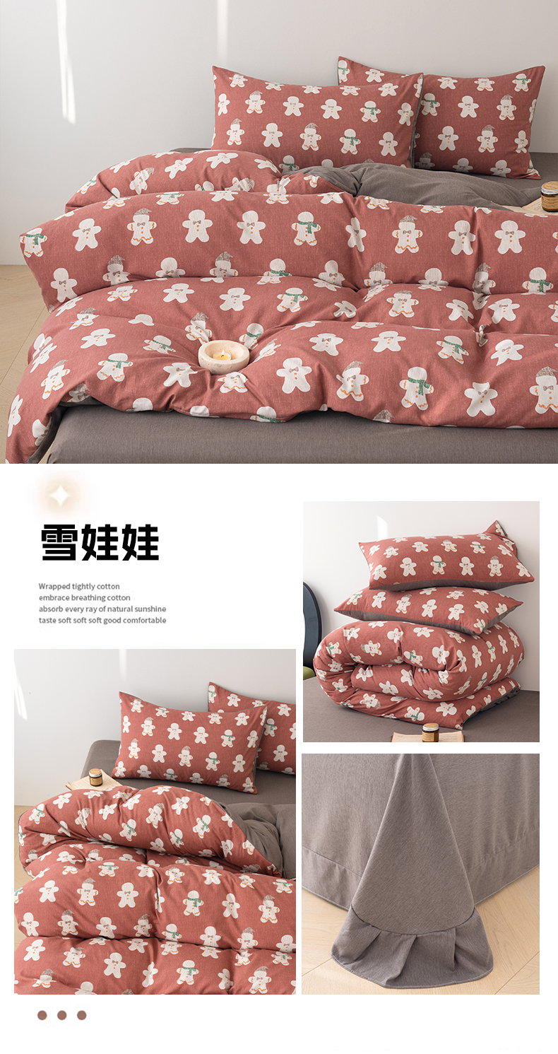 商品名称:竹合家纺 2025秋冬新款加厚磨毛色织暖绒系列针织四件套高克重雪娃娃