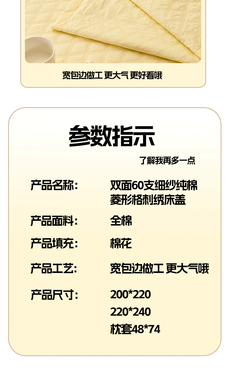 (总)莎果家纺 2025新款双面60支纯棉细纱菱形格刺绣床盖,菱形白,菱形粉,菱形黄,菱形灰,菱形卡其,菱形浅绿,菱形紫