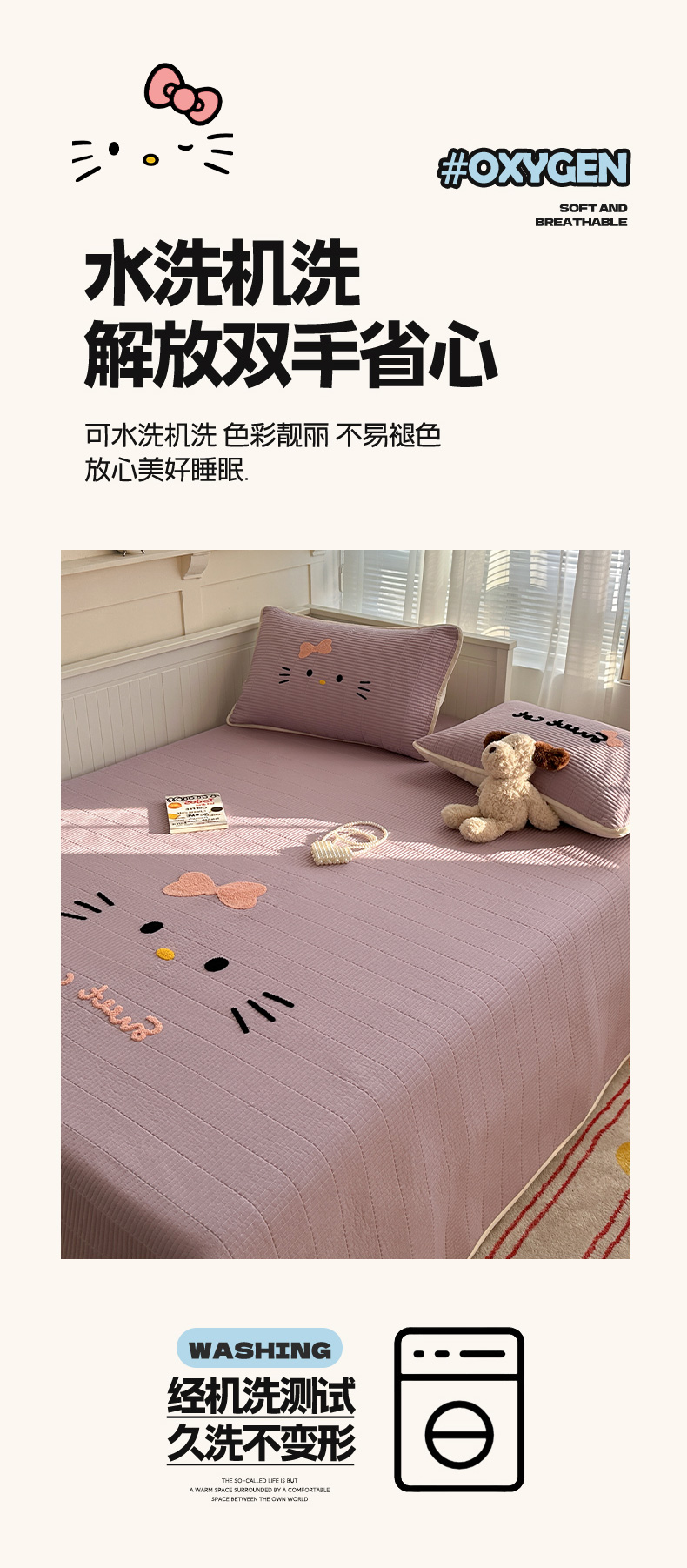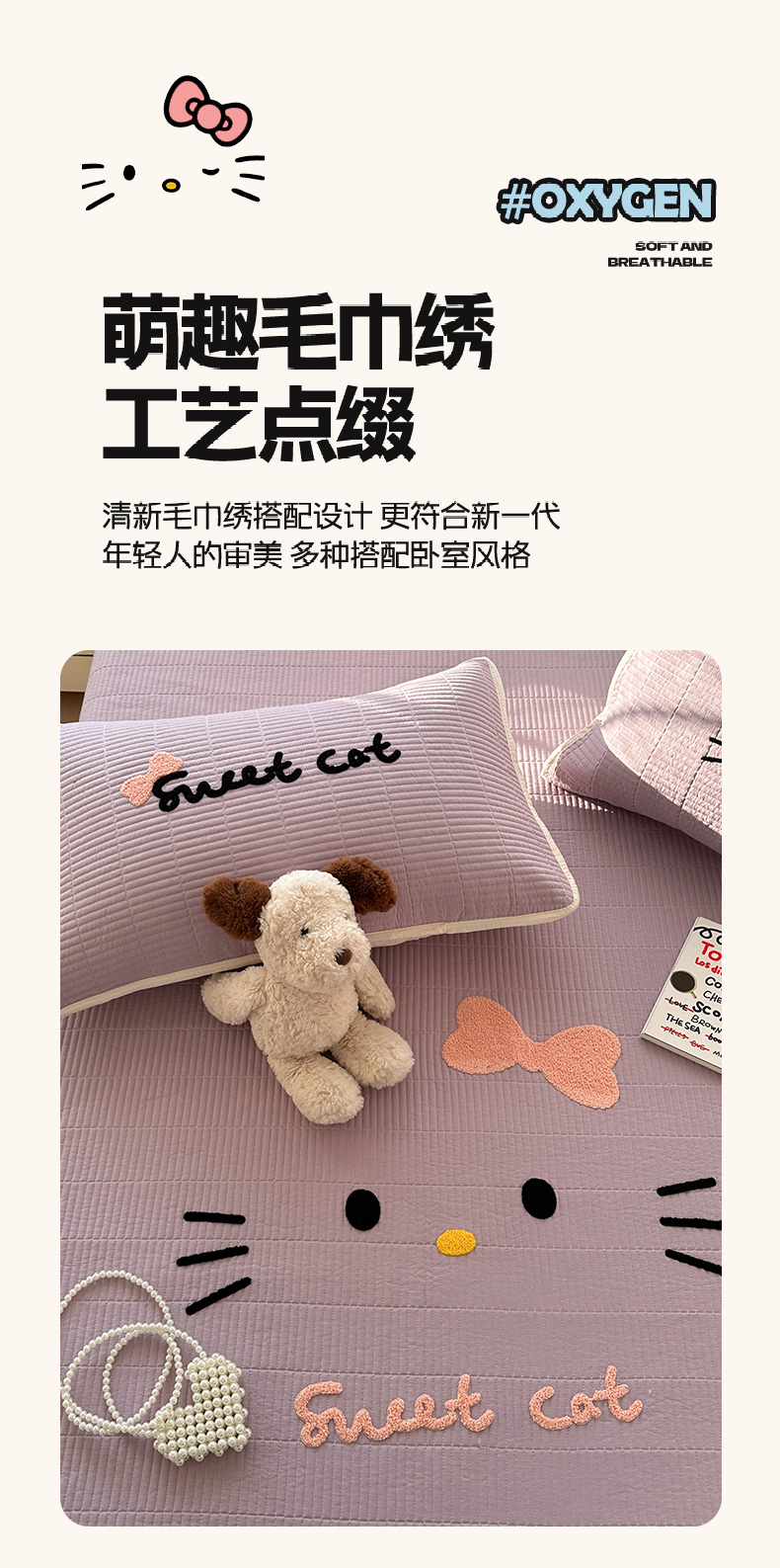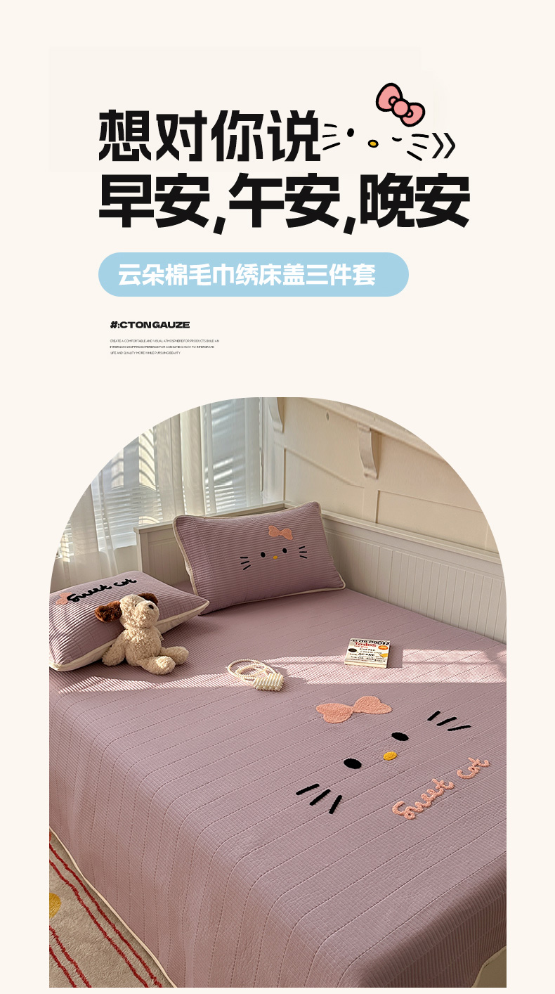 商品名称:繁花家居 2025新款云朵棉软到心坎可爱毛巾绣床盖,不跑床的加厚床单 喵喵-奶紫