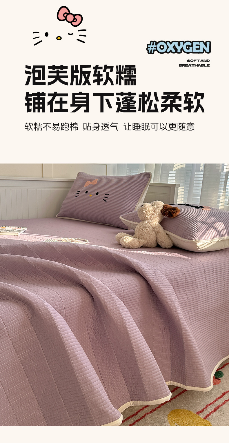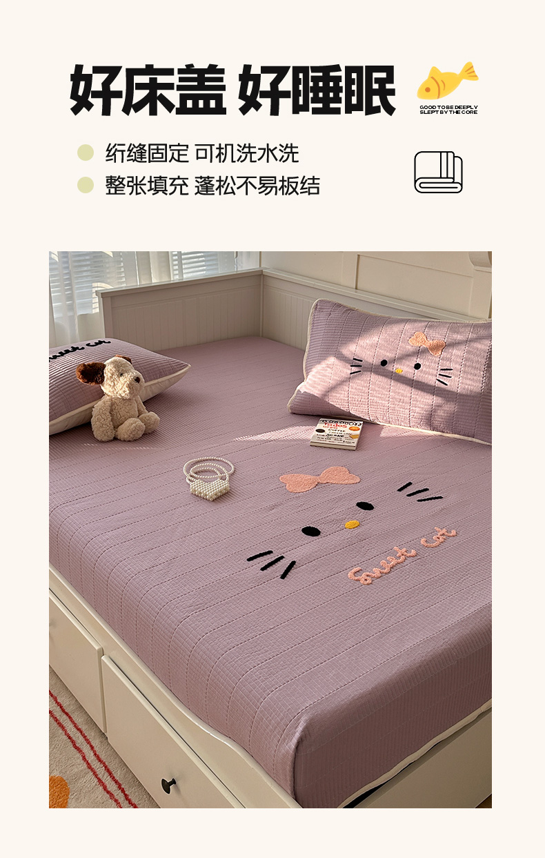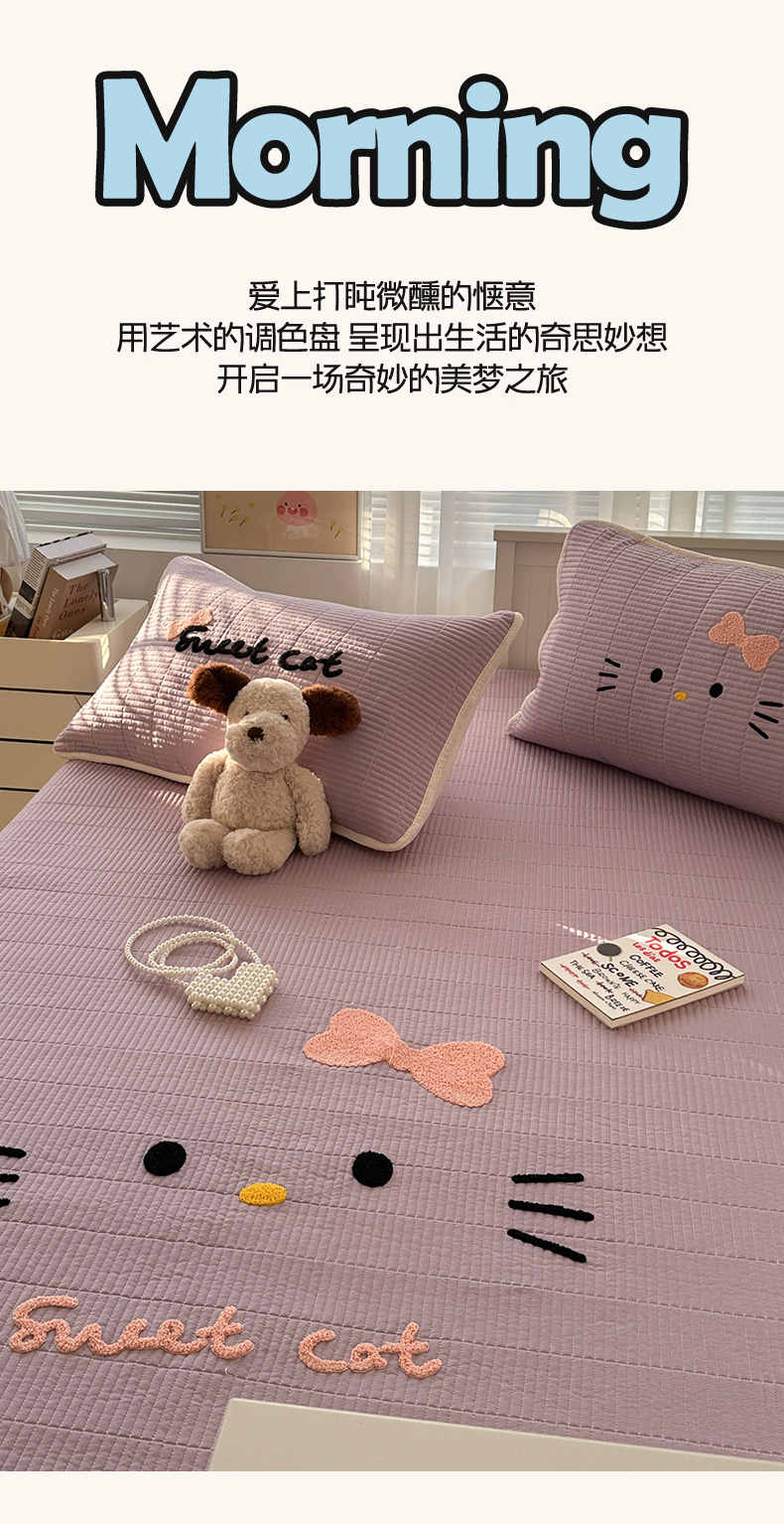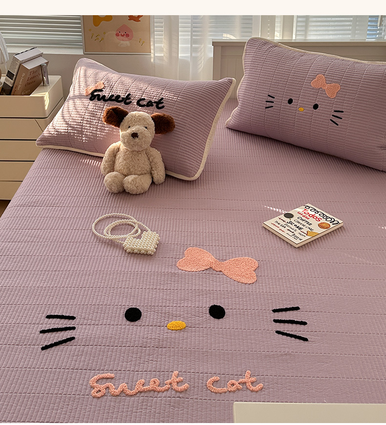 繁花家居 2025新款云朵棉软到心坎可爱毛巾绣床盖,不跑床的加厚床单 喵喵-奶紫