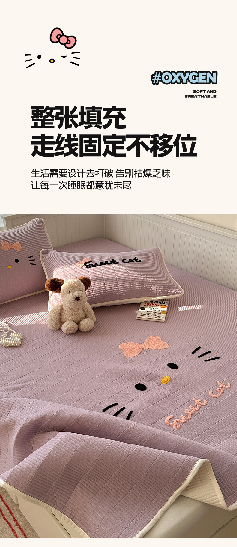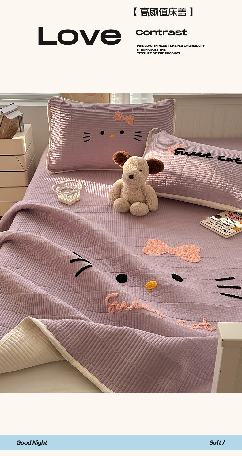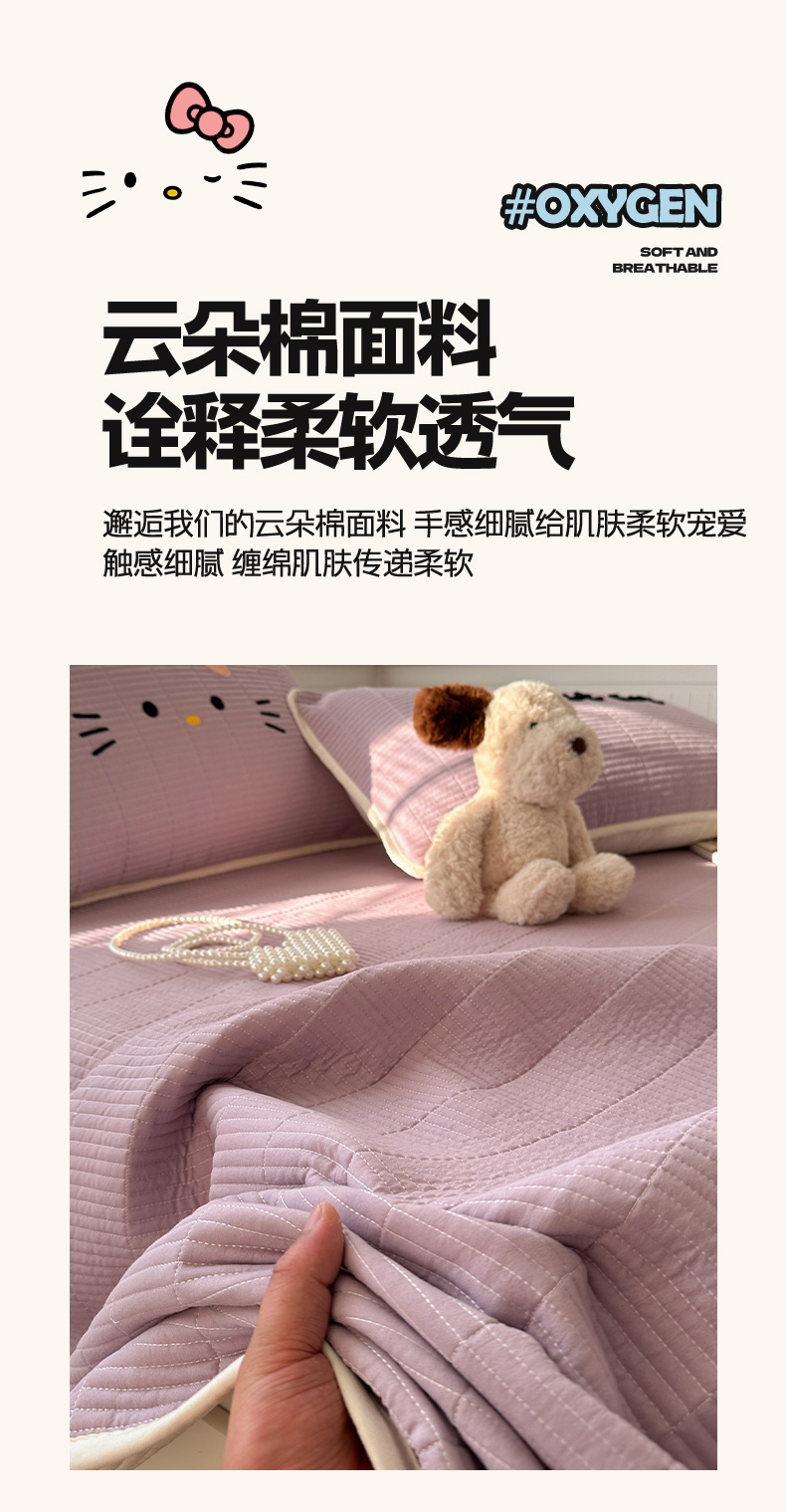 繁花家居 2025新款云朵棉软到心坎可爱毛巾绣床盖,不跑床的加厚床单 喵喵-奶紫