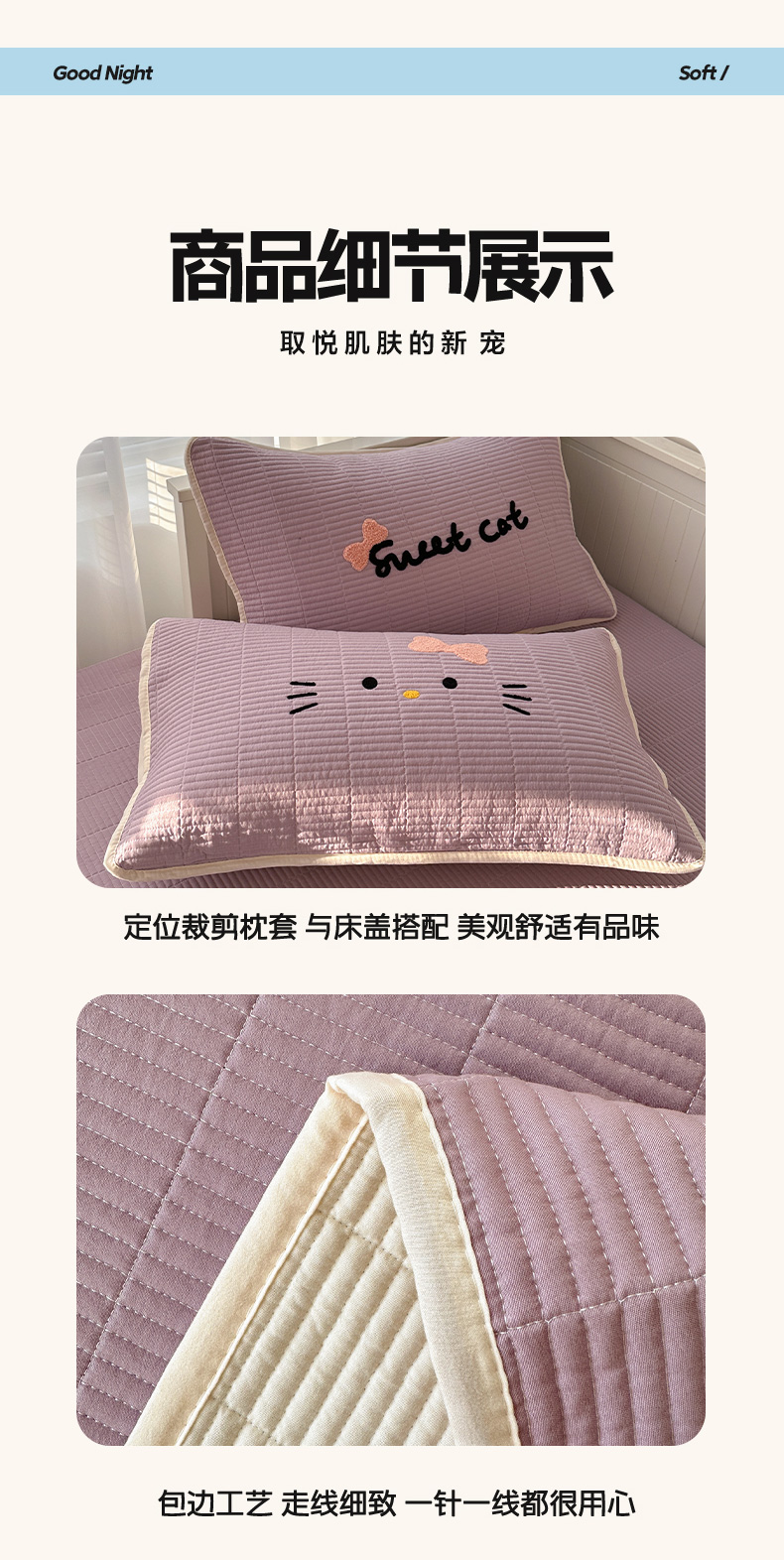 (总)繁花家居 2025新款云朵棉软到心坎可爱毛巾绣床盖,不跑床的加厚床单,喵喵-奶粉,喵喵-奶蓝,喵喵-奶白,喵喵-奶黄,喵喵-奶绿,喵喵-奶杏,喵喵-奶紫