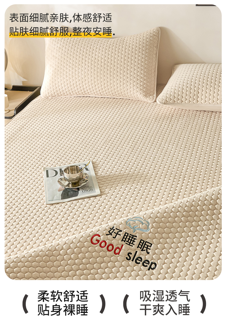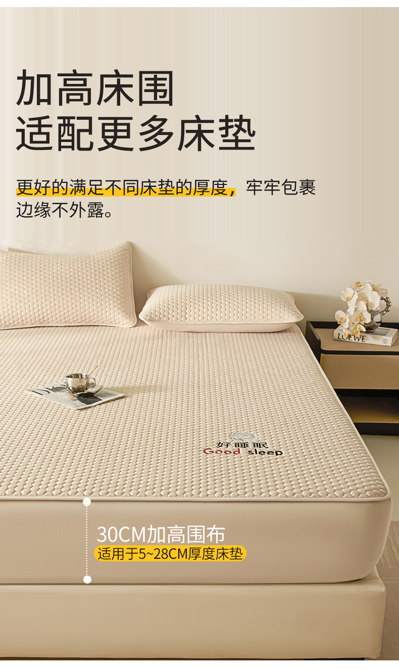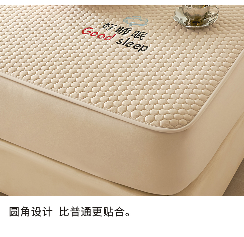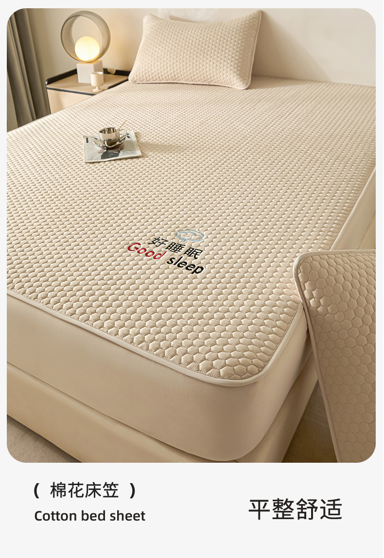 (总)居眠 2025新款防水夹棉床笠-清雅,清雅-粉色,清雅-灰色,清雅-卡其,清雅-绿色,清雅-米白,清雅-深蓝