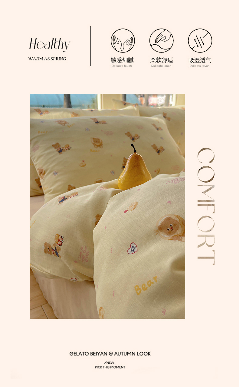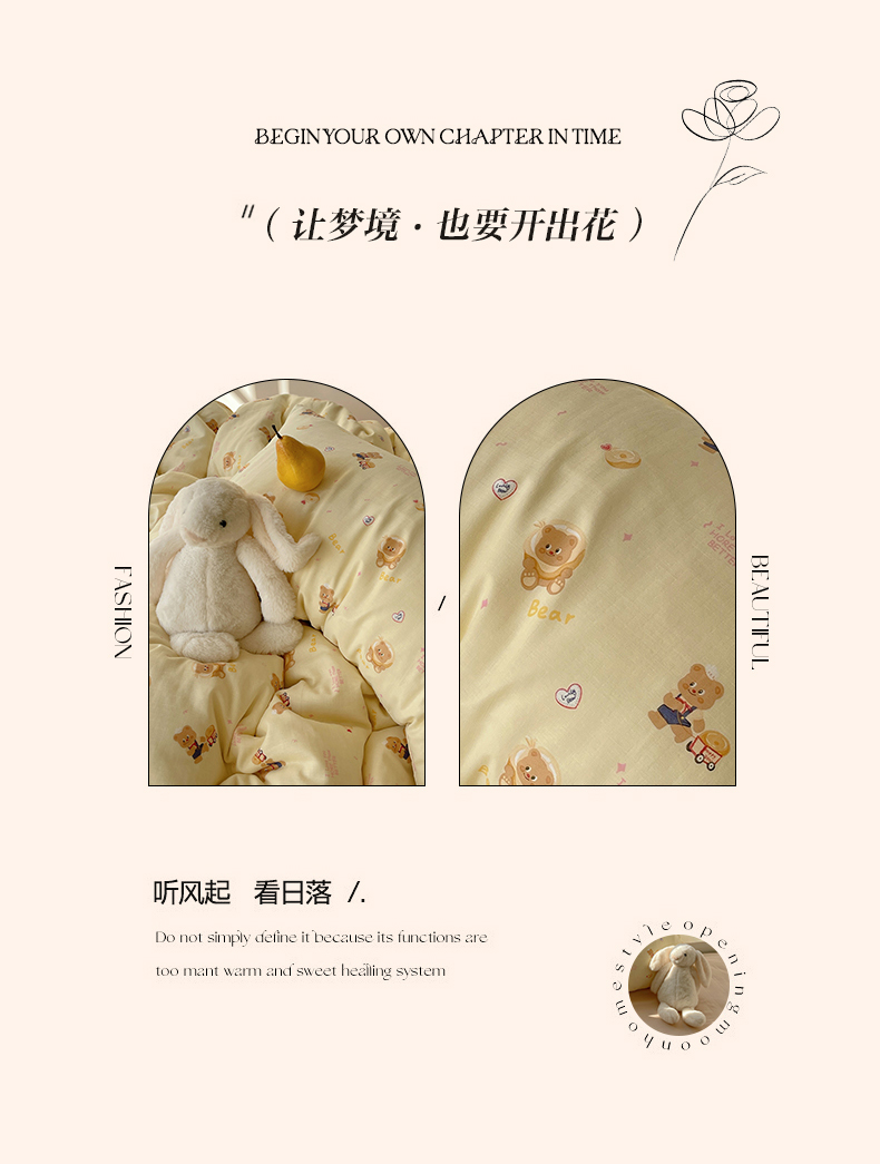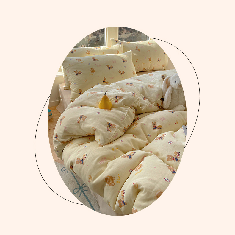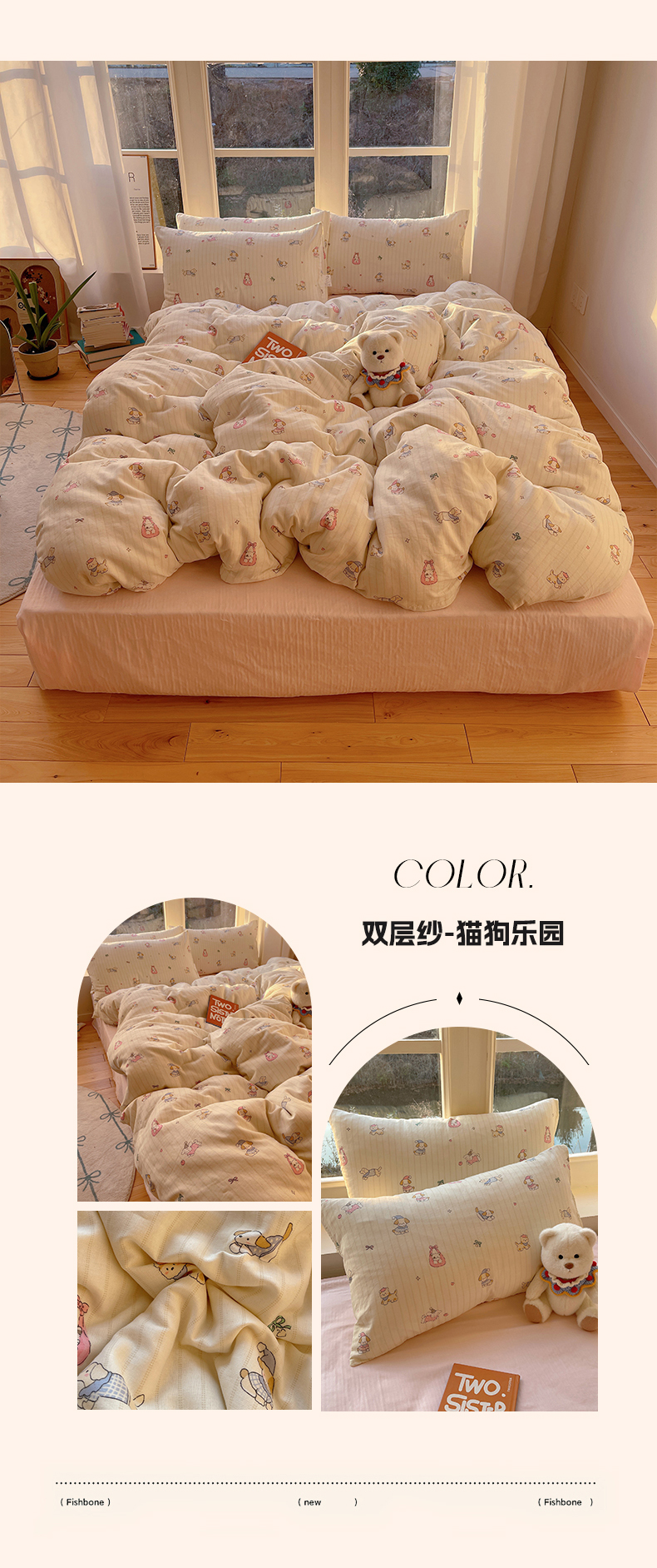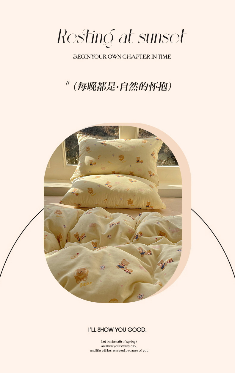 当前位置: 91家纺网 > 商品网购 > 床品套件 > 四件套 > 全棉普通四件套 > 六巷胡同 2026春夏新款INS卡通A类全棉纯棉双层纱四件套 双层纱-烘焙小熊