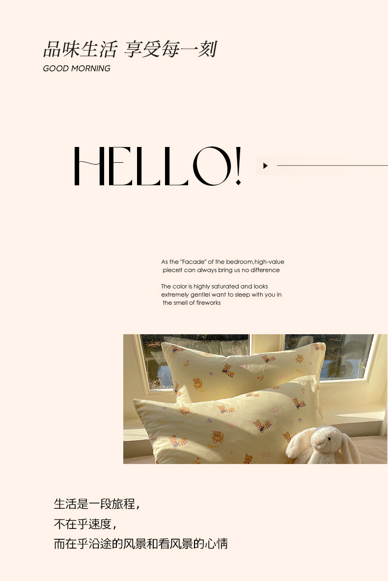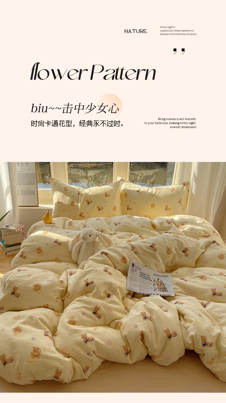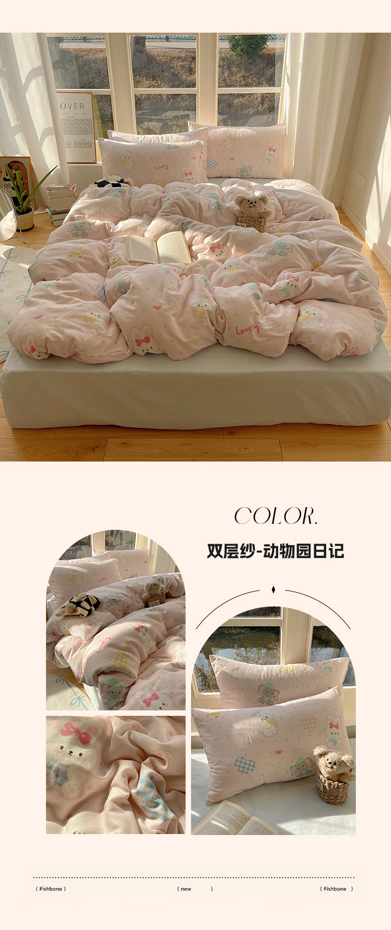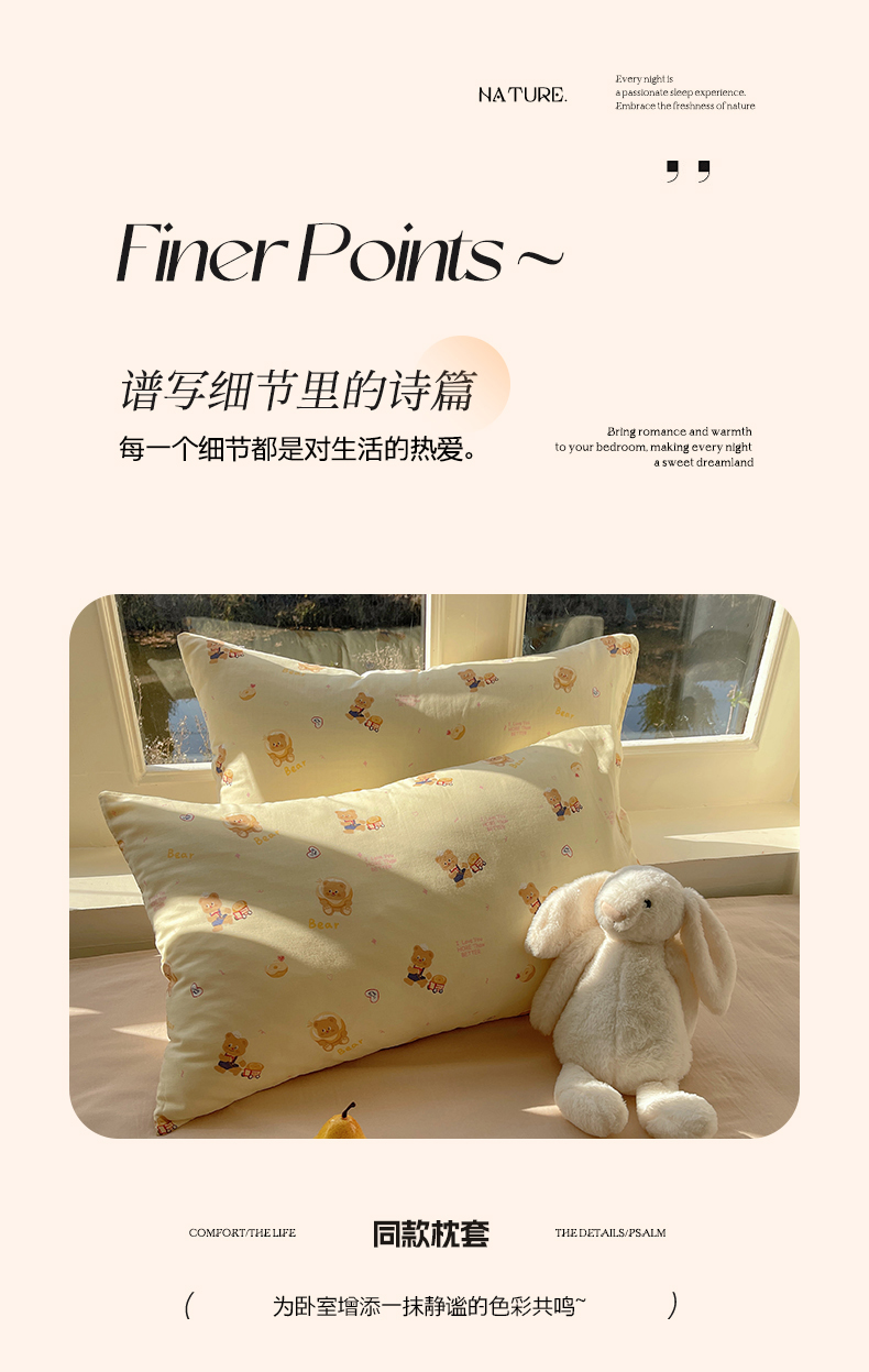 当前位置: 91家纺网 > 商品网购 > 床品套件 > 四件套 > 全棉普通四件套 > 六巷胡同 2026春夏新款INS卡通A类全棉纯棉双层纱四件套 双层纱-烘焙小熊