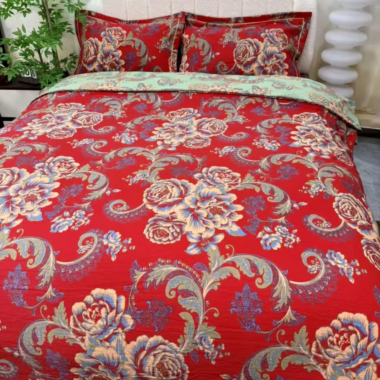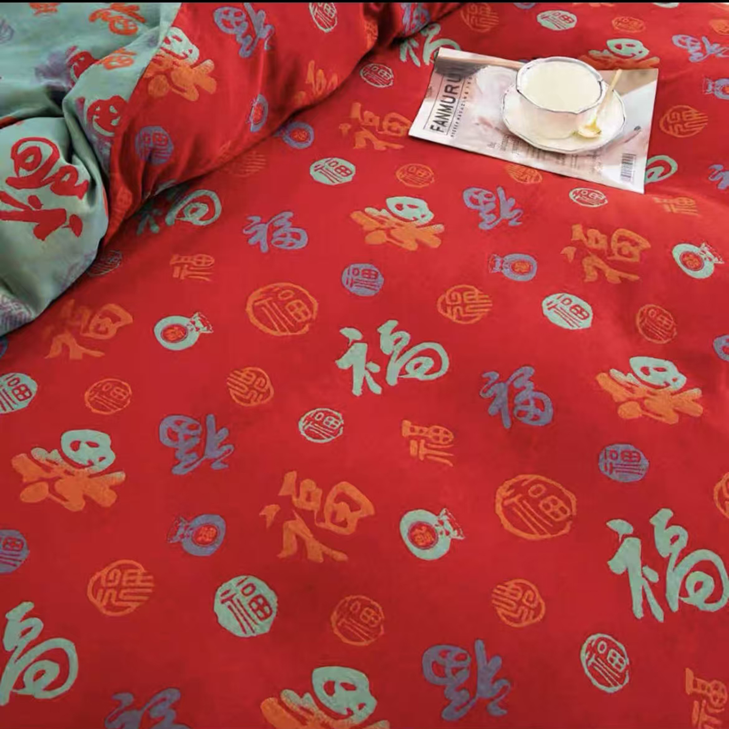 禧多家纺 2025新款年货爆款大红双层纱四件套 鸿运当头