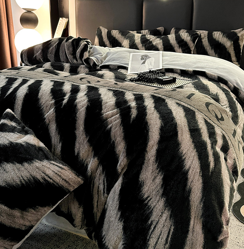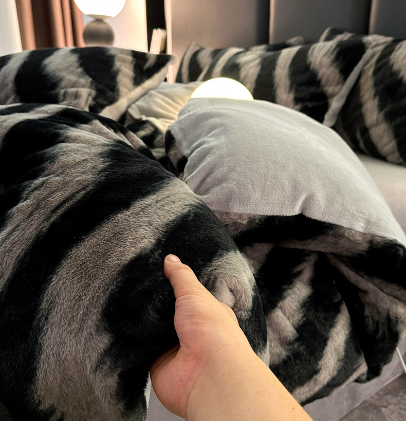 商品名称:栩裕纺织 2026新款高克重兔毛四件套-美拉德系列(提供买家秀) 美拉德-DR虎纹灰