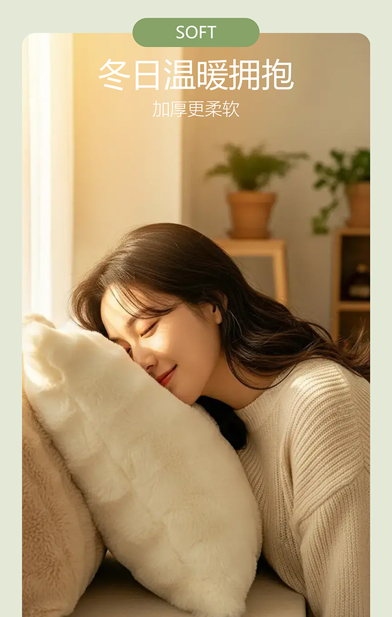 (总)囍莱家纺 2026新款兔毛绒暖冬抱枕,馥芮白,灰黑巧,抹茶绿,拿铁棕,组合图仅供展示