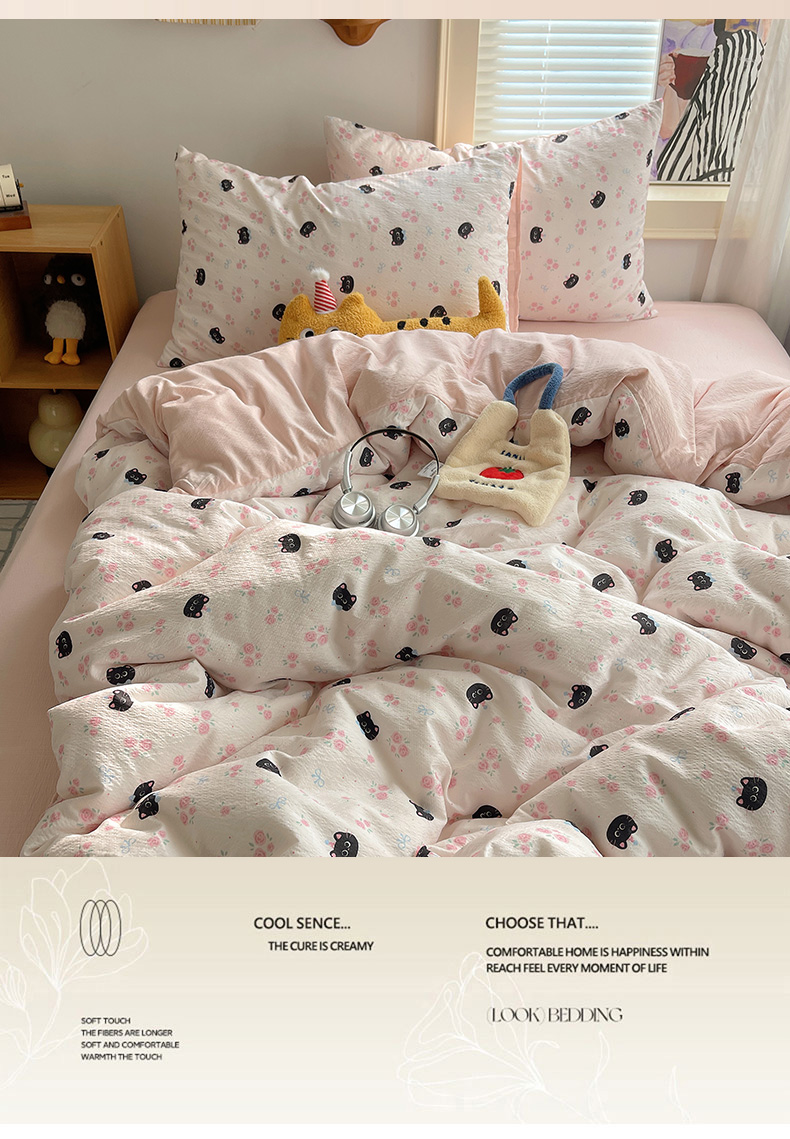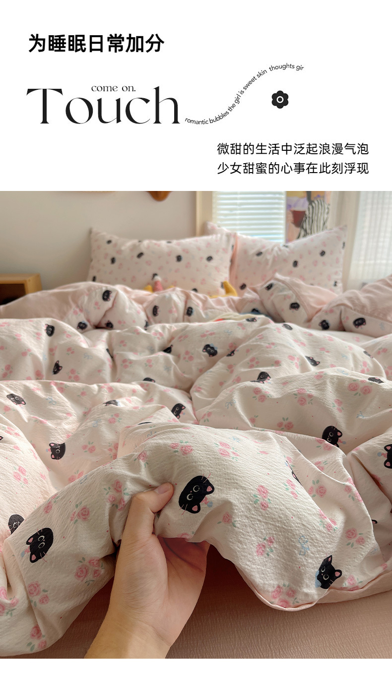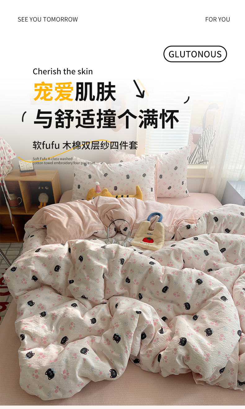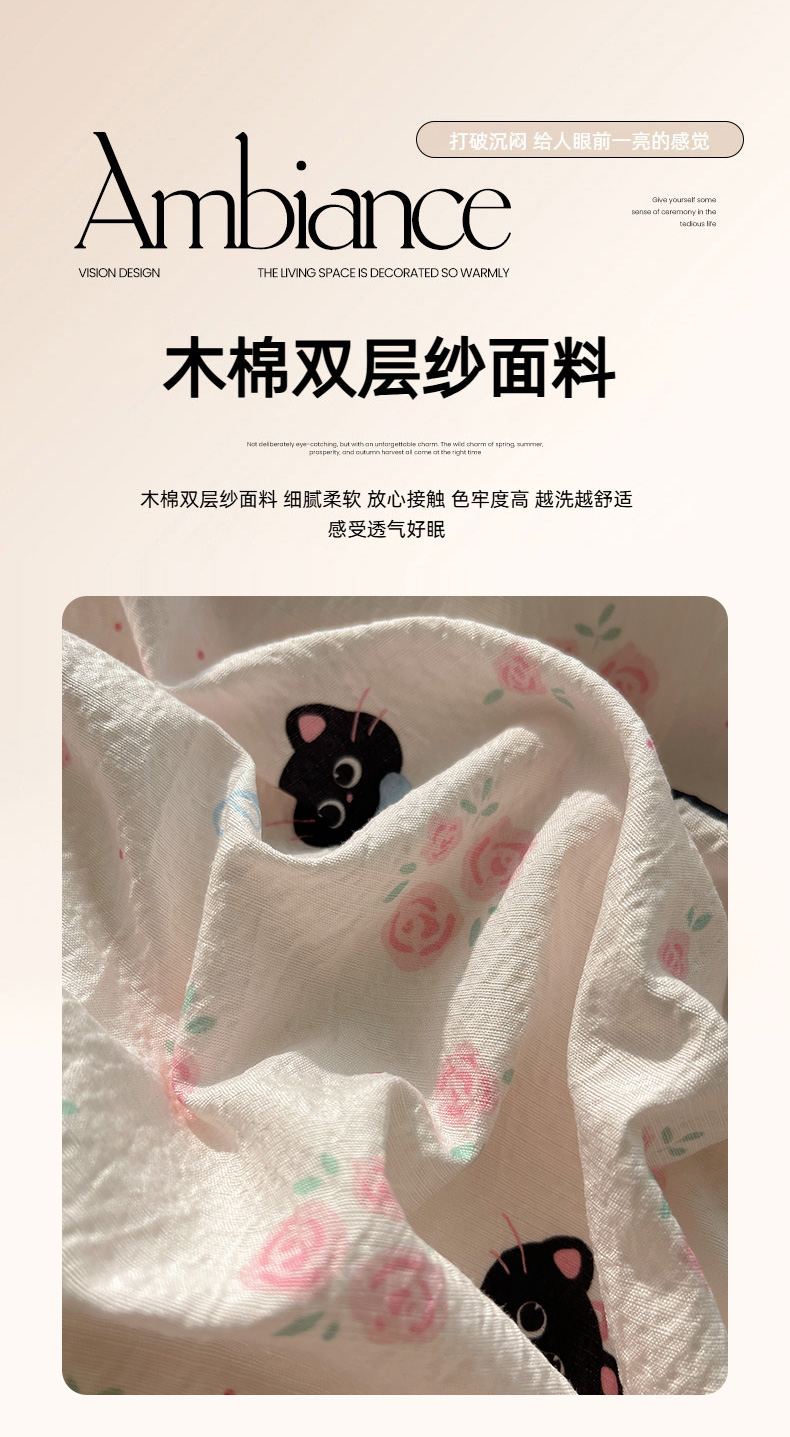 当前位置: 91家纺网 > 商品网购 > 床品套件 > 四件套 > 双层纱四件套 > 繁花家居 2026新款木棉双层纱四件套 蔷薇黑猫