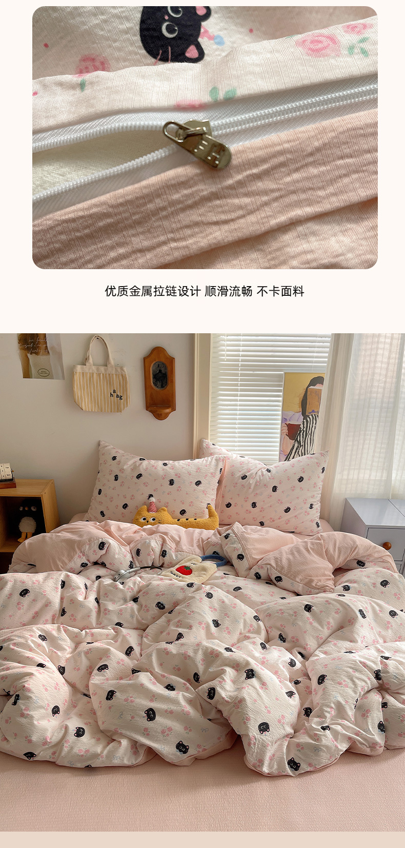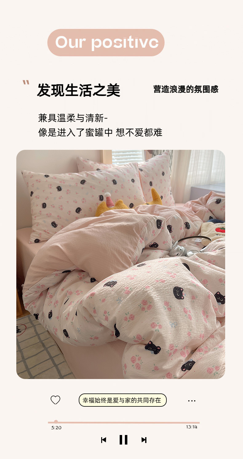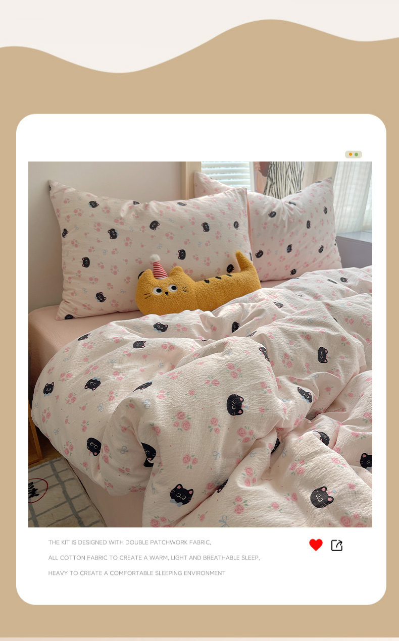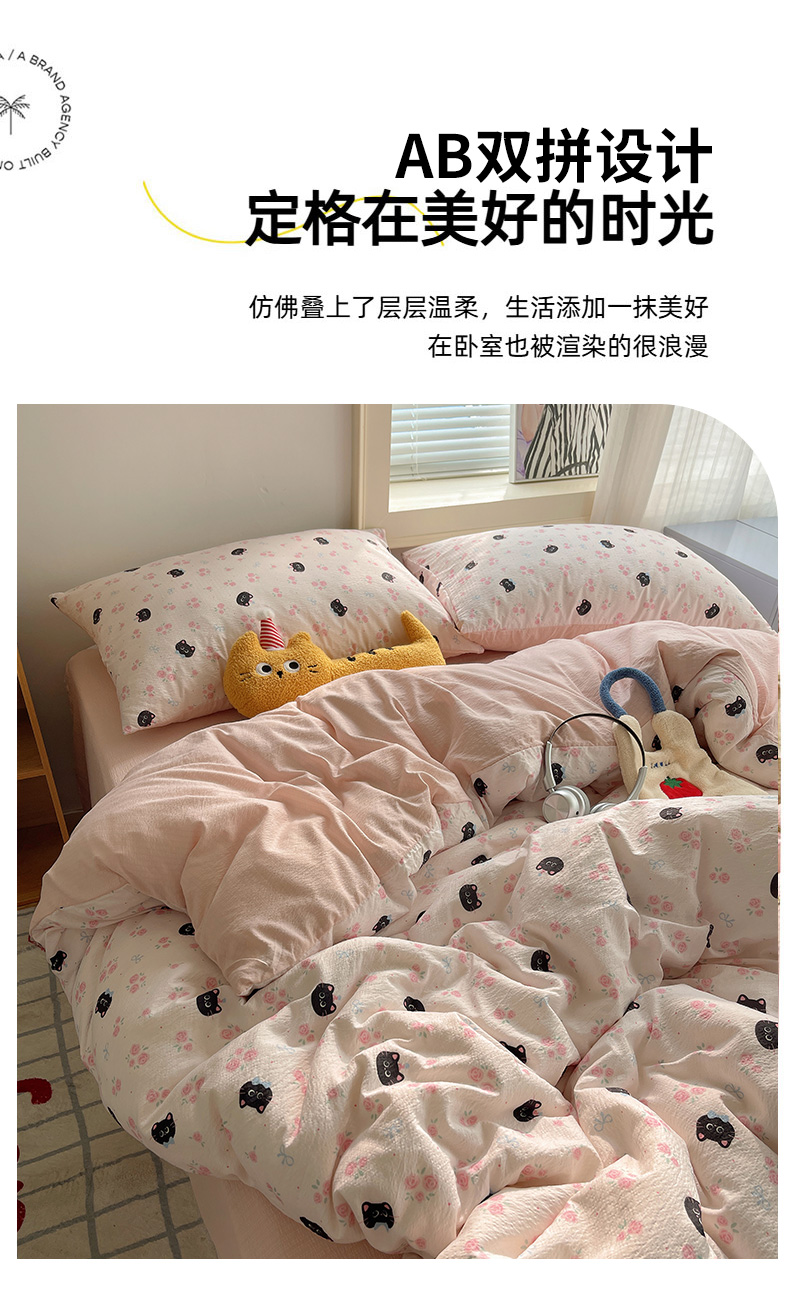 当前位置: 91家纺网 > 商品网购 > 床品套件 > 四件套 > 双层纱四件套 > 繁花家居 2026新款木棉双层纱四件套 蔷薇黑猫