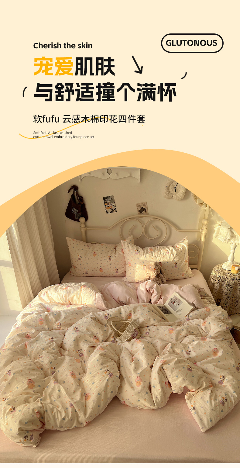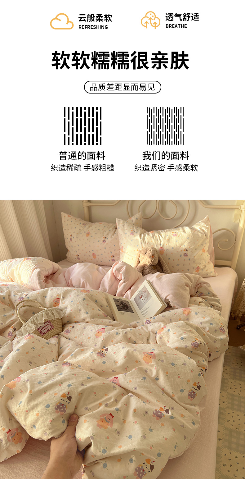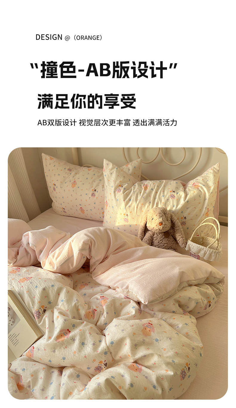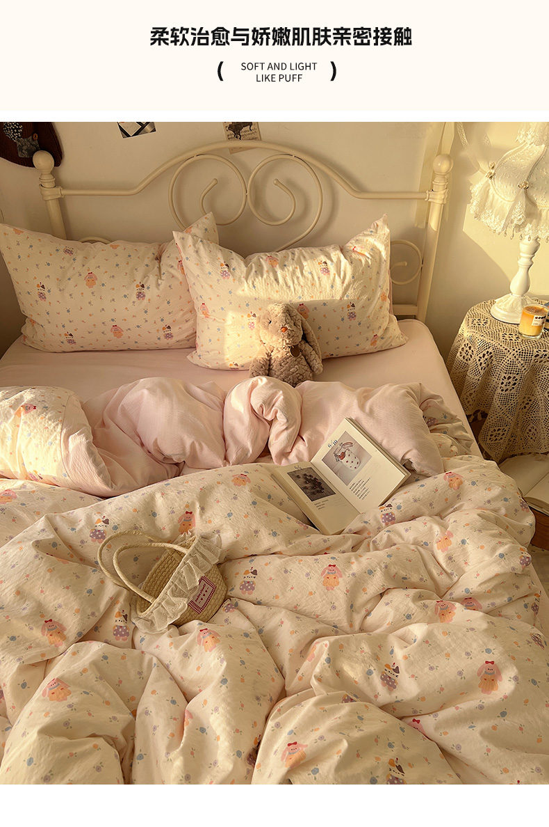 当前位置: 91家纺网 > 商品网购 > 床品套件 > 四件套 > 双层纱四件套 > 繁花家居 2026新款木棉双层纱四件套 兔兔与猫