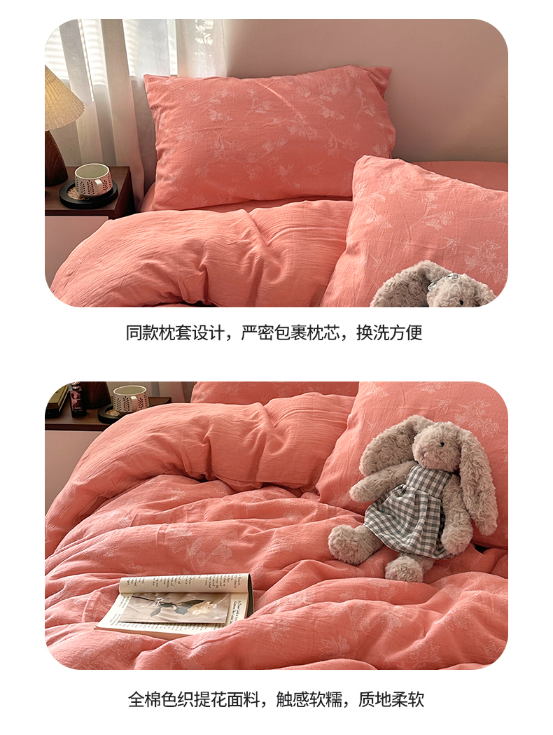 艾咪-Amy ntmy 2026新款法式复古风全棉色织提花四件套-素雅 素雅橙