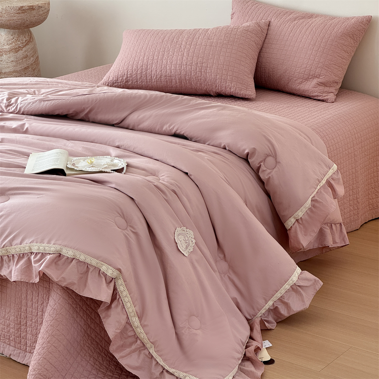 (总)床盖工厂店 2026新款小花边双面全棉填充棉花床盖三件套,组合图仅供展示不可下单,风雅小筑(咖),虹光兰花(兰),花下诗页,花园梦梦,简花影(咖),柯基小镇,洛莉,曼城蝴蝶,纽约樱桃(咖),瑞莎(蓝),若芷嫣(绿),温锦织(米),紫珠漫(咖)