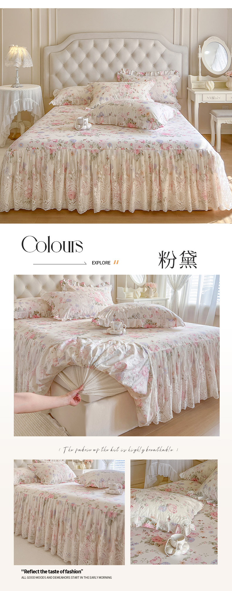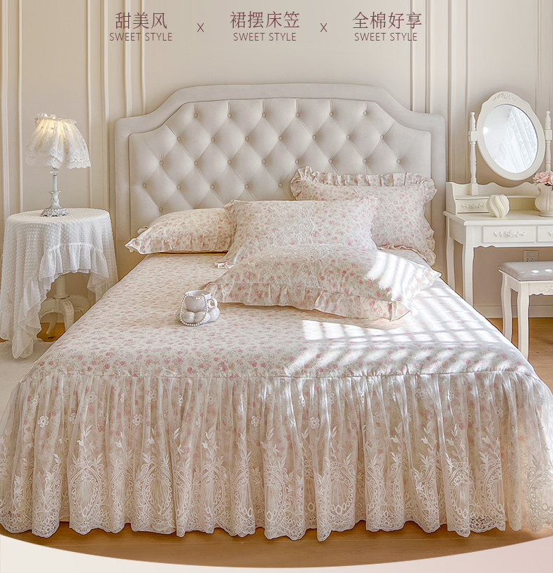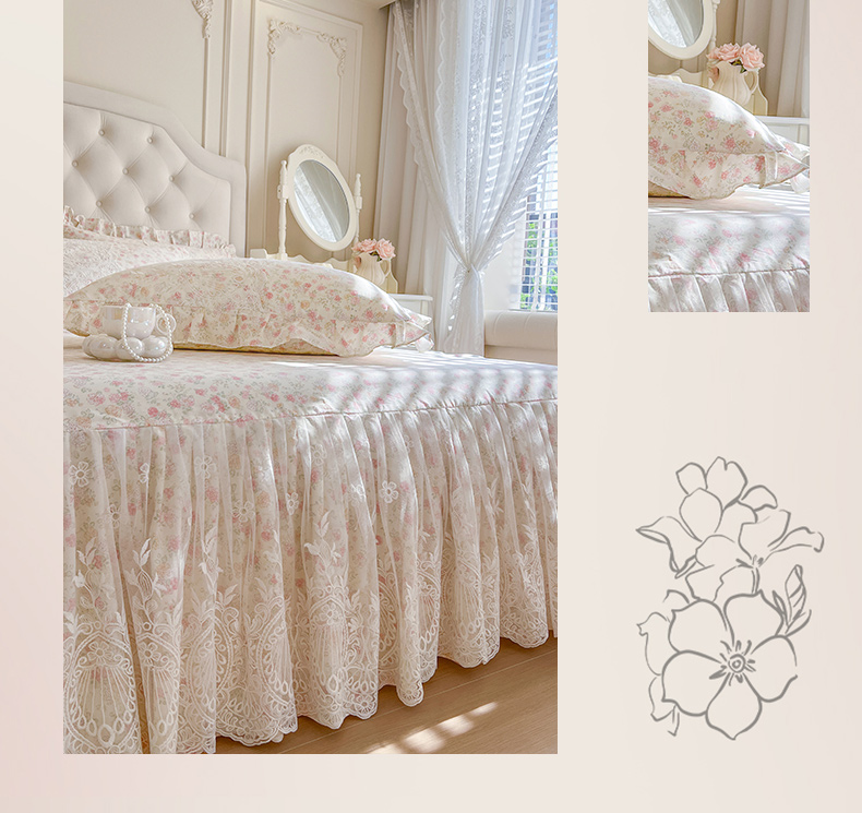 (总)恋尚 2025新款印花竹节纱床笠款床裙四件套(四件套控价220起),春野,花浅,花悦,莫婷,秋茉,甜梦