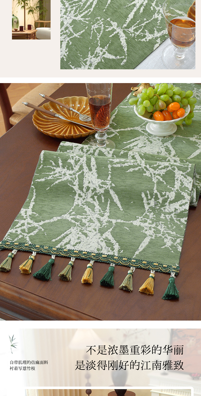 商品名称:南通大梧纺织 2026新款中式墨竹桌旗 墨竹-绿