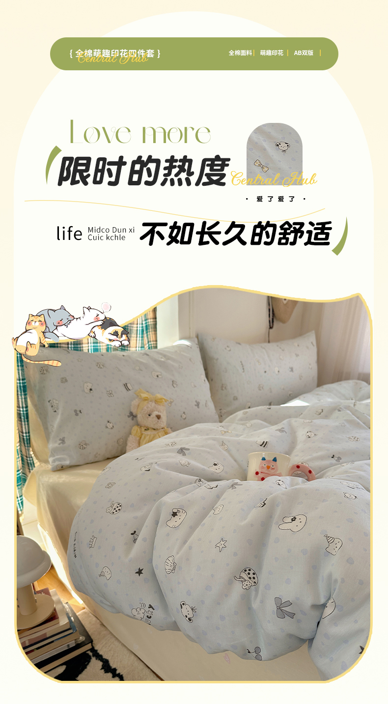 • 91家纺网 家纺一手货源 找家纺 (总)瑞莱 (持续上新)2026新款全棉纯棉印花贝壳边四件套,星梦凯蒂,蓝调豹纹喵,千禧少女,素格小奶狗,小町的家,星夜柯基,棕格萌犬