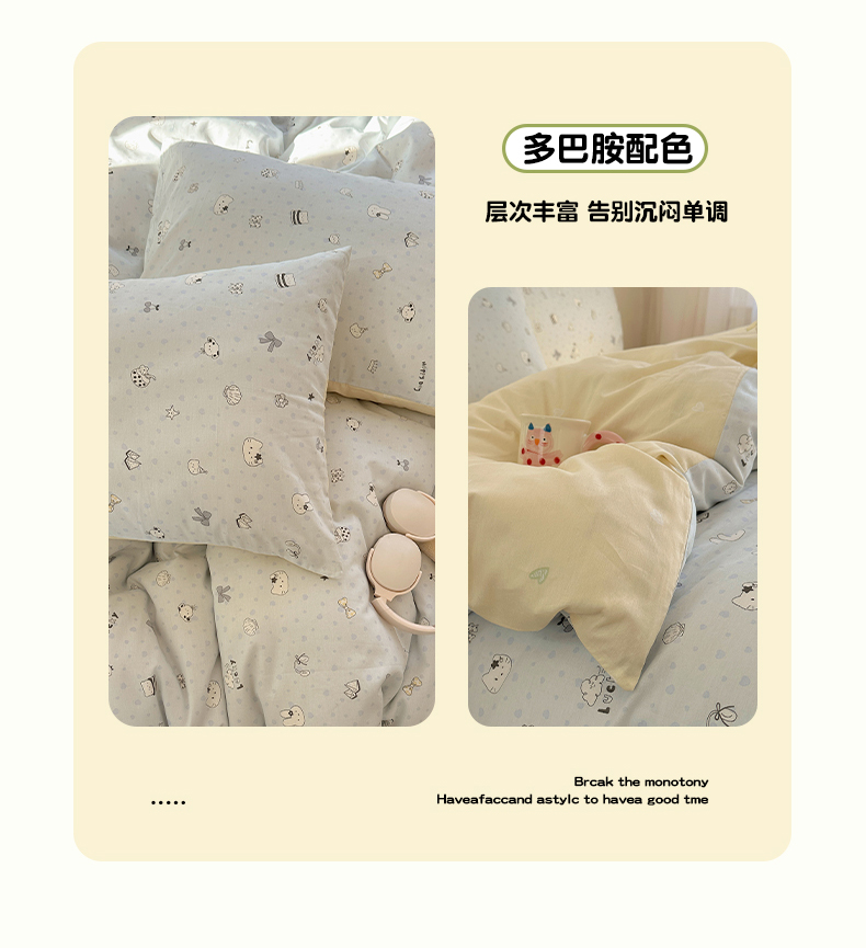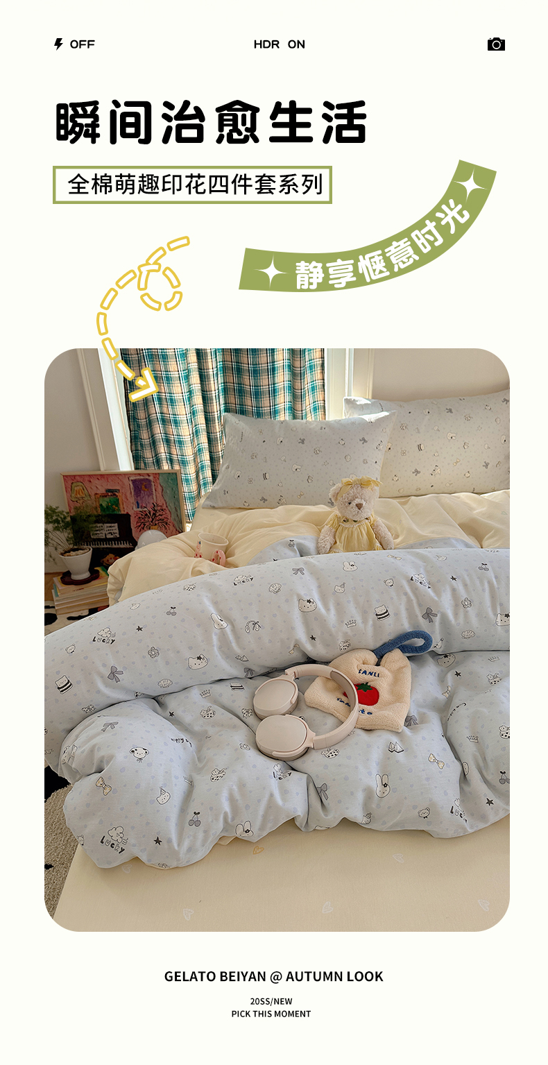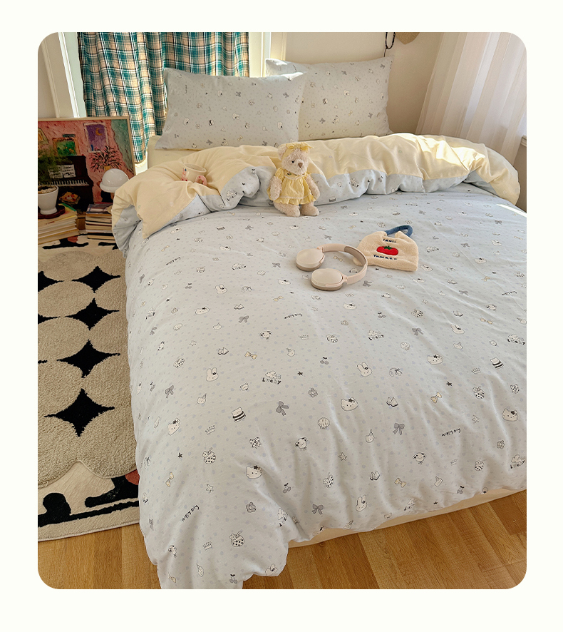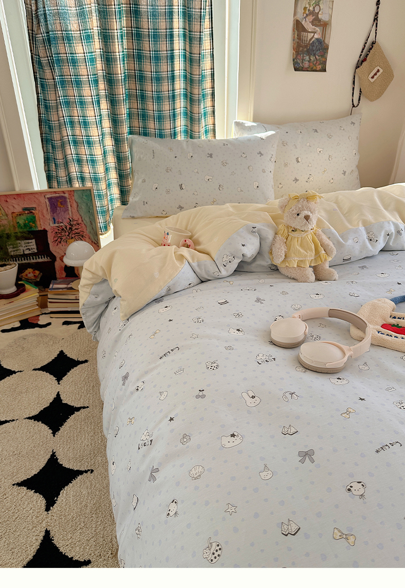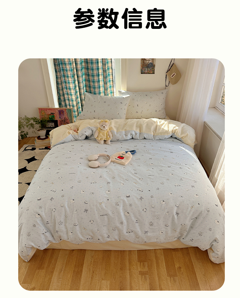 (总)瑞莱 2026新款A类全棉纯棉有氧双层纱四件套,白熊小姐,彩色木马,淡彩花笺,费尔岛小熊,焦糖奶汪-桔,焦糖奶汪-绿,萌星,苹果星星人,小樱桃,樱桃画报