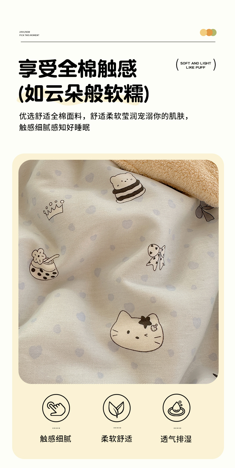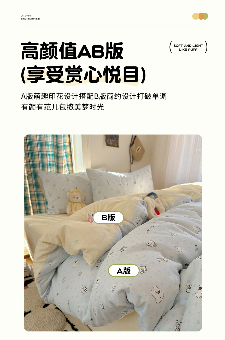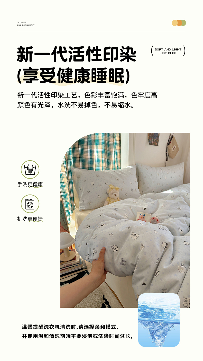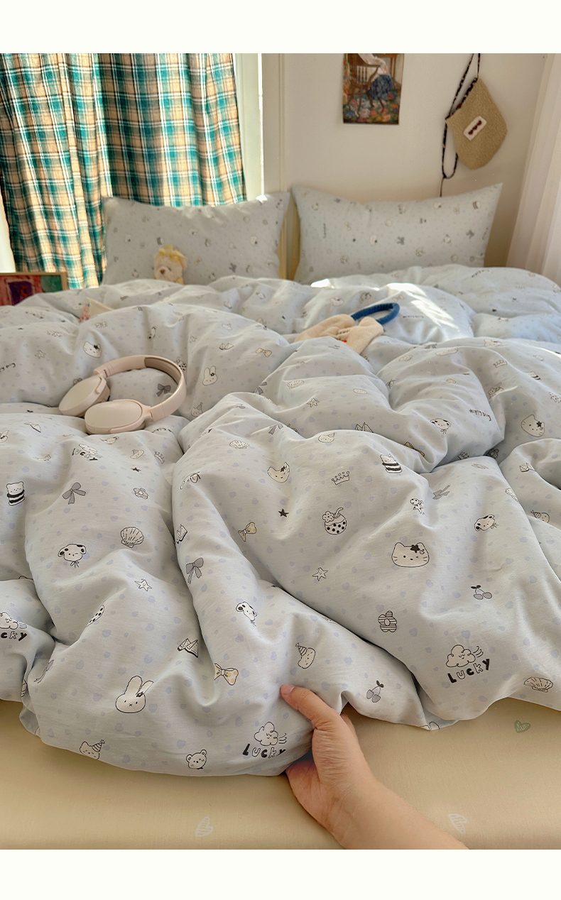 (总)瑞莱 2026新款A类全棉纯棉有氧双层纱四件套,白熊小姐,彩色木马,淡彩花笺,费尔岛小熊,焦糖奶汪-桔,焦糖奶汪-绿,萌星,苹果星星人,小樱桃,樱桃画报