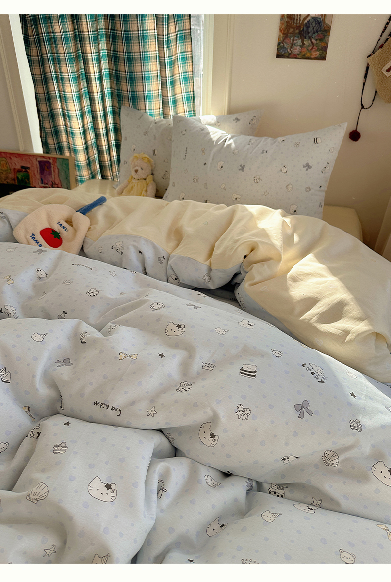 (总)瑞莱 (持续上新)2026新款全棉纯棉印花贝壳边四件套,星梦凯蒂,蓝调豹纹喵,千禧少女,素格小奶狗,小町的家,星夜柯基,棕格萌犬