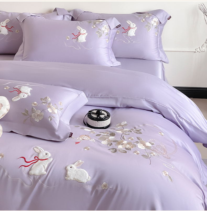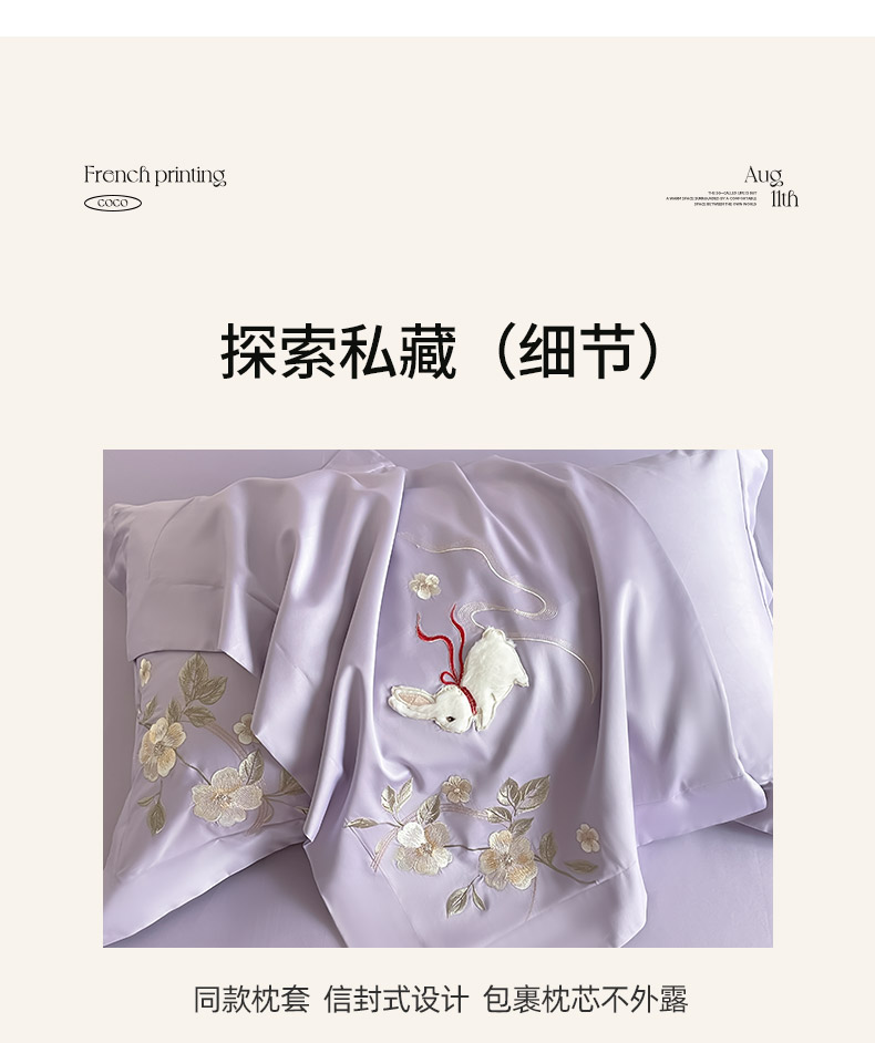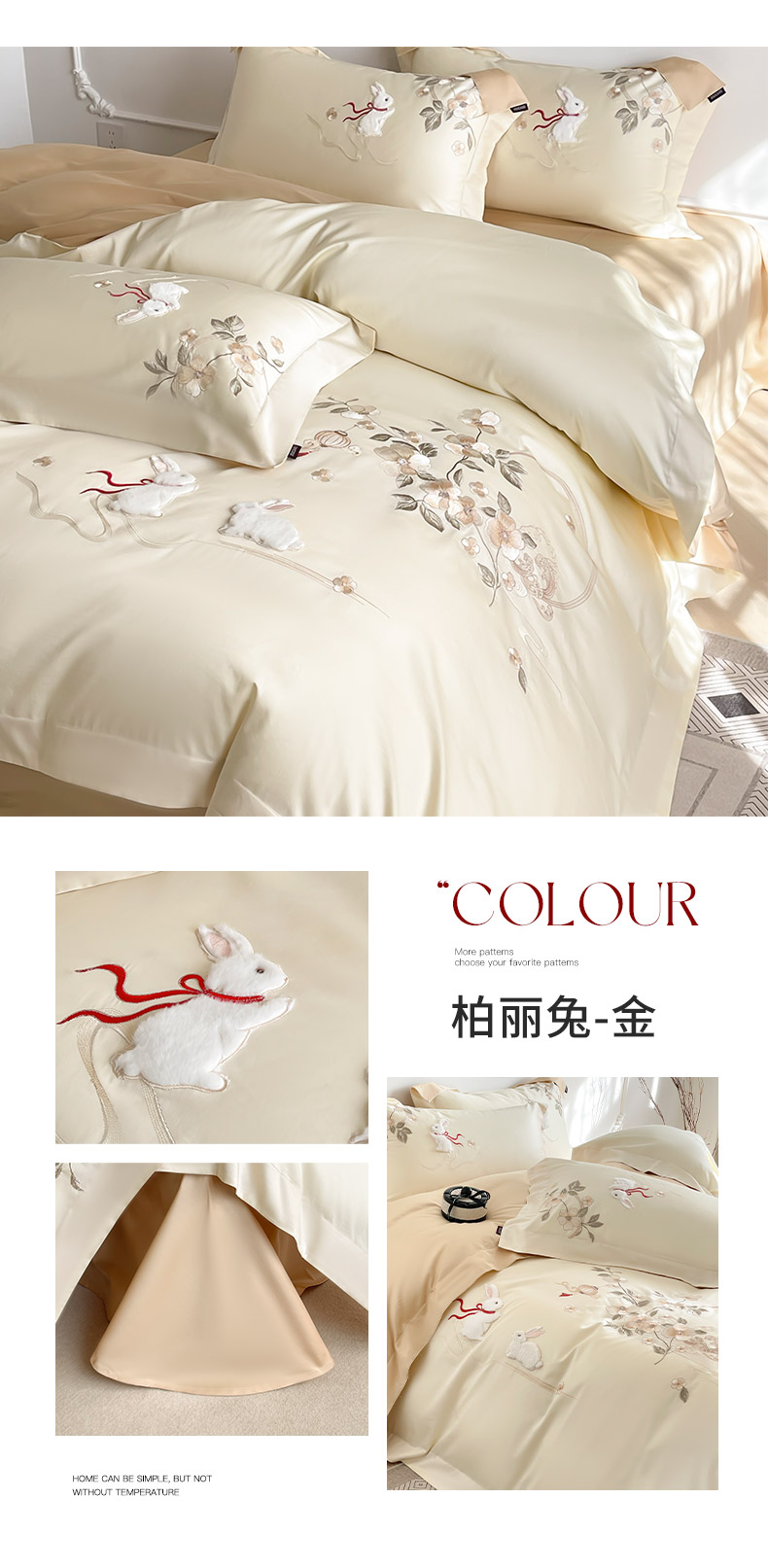 (总) 2026新年锦鲤A类贡缎长绒棉四件套纯棉重工刺绣被套床单床笠喜庆床上用品-柏丽兔,柏丽兔-棕,柏丽兔-粉,柏丽兔-金,柏丽兔-紫