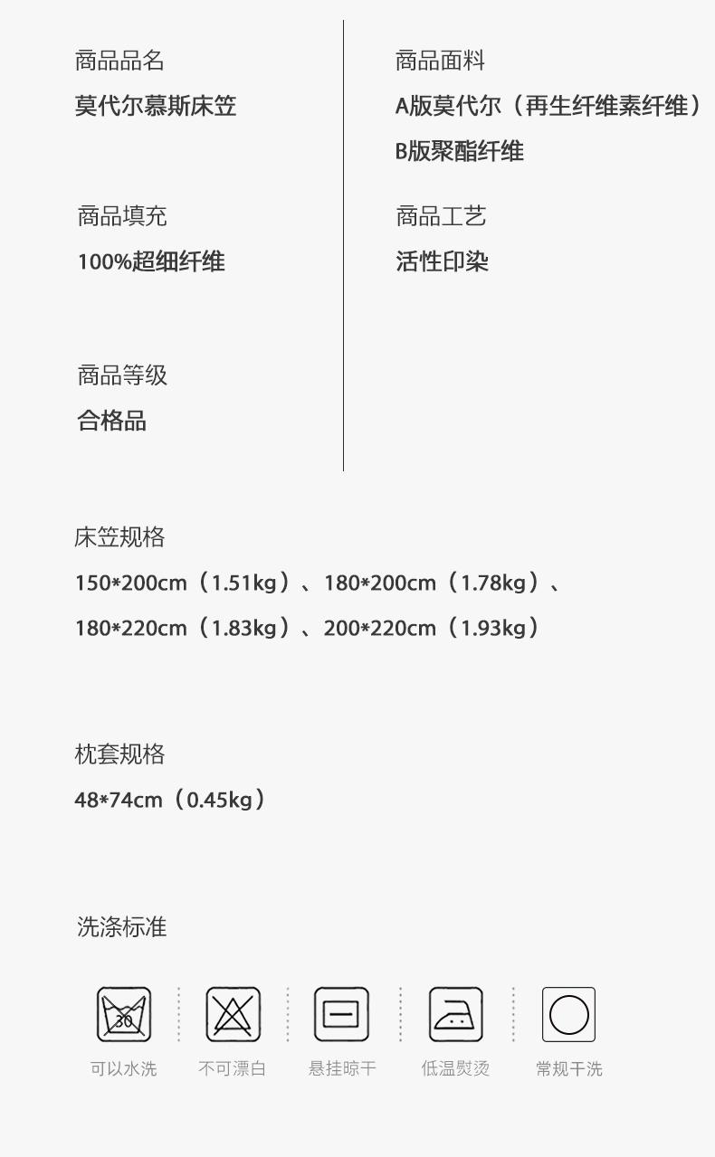 150x200cm单床笠+枕套一对 | ¥130.00 |