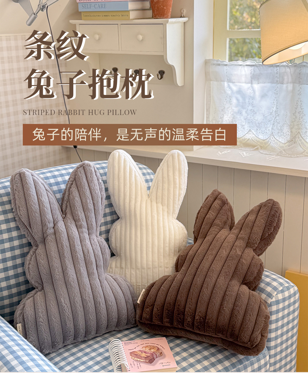 (总)美茉家居 2026新款兔毛抽条条纹兔子抱枕,灰色宽条,米白宽条,米白窄条,深咖宽条