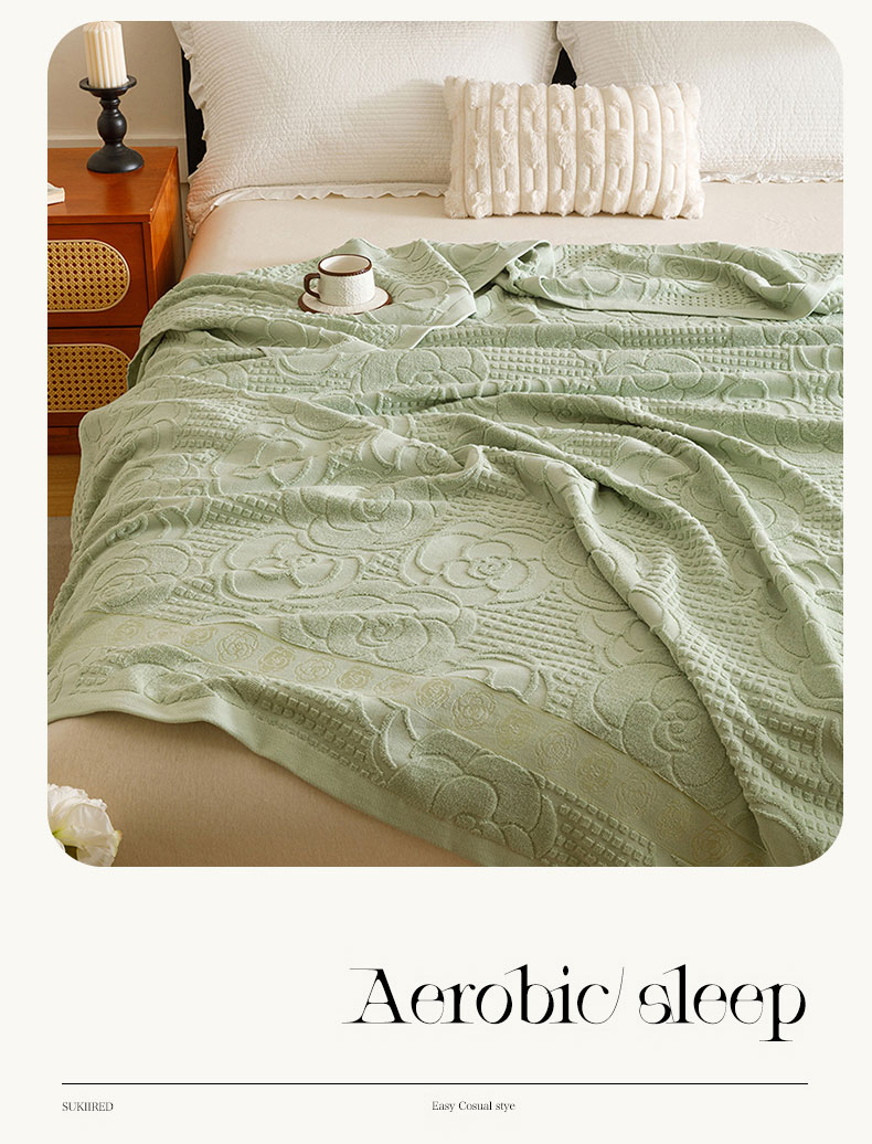 悦然毛巾被 2026新款全棉老式毛巾被夏被空调毯 山茶旧梦灰青