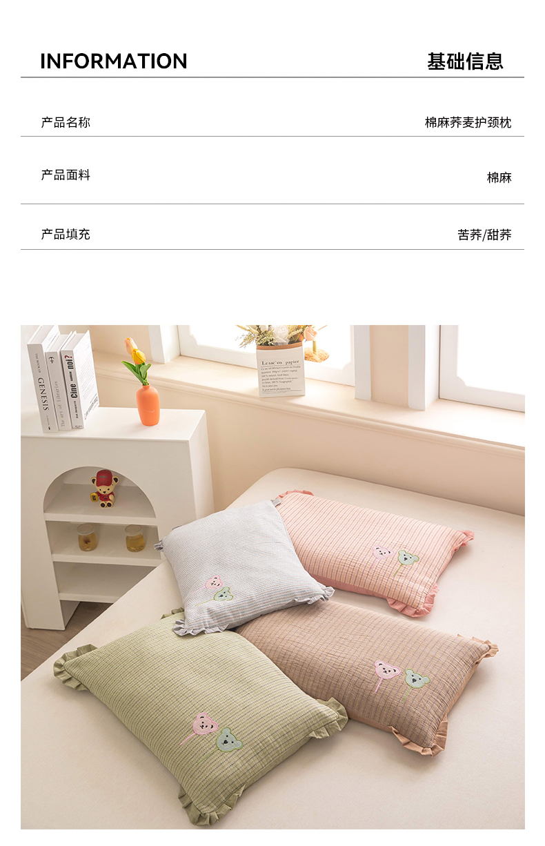 (总)梦莱家纺 2026新款围巾熊棉麻荞麦枕枕头枕芯,组合图仅做展示不可下单,围巾熊-绿,围巾熊-黄,围巾熊-灰,围巾熊-粉